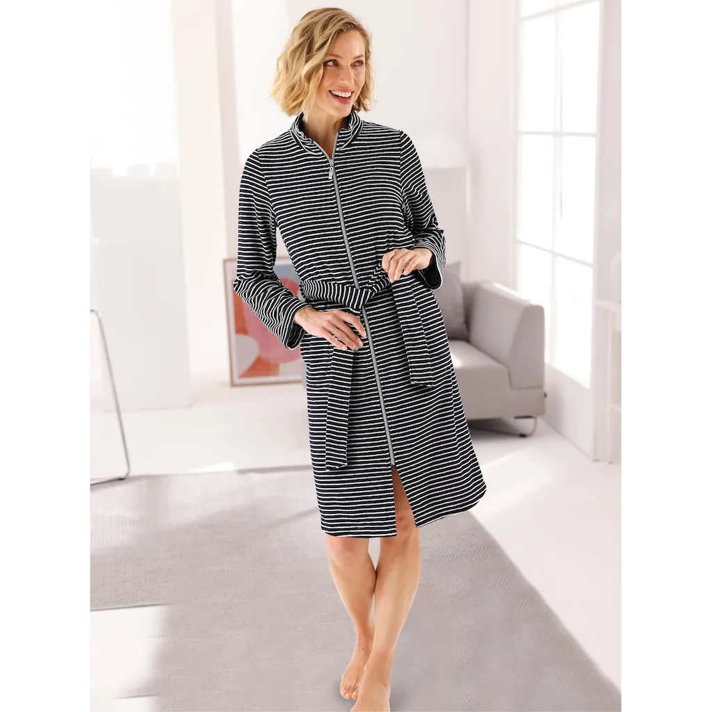 Легкий фротте с качественно окрашенными в пряже полосками, которые остаются яркими даже после многих стирок! Халат от feel good с высоким воротником, застежкой-молнией по всей длине и поясом. Карманы встроены в смещенный боковой шов. Поддерживает инициативу Cotton made in Africa. 80% хлопок, 20% полиэстер.
