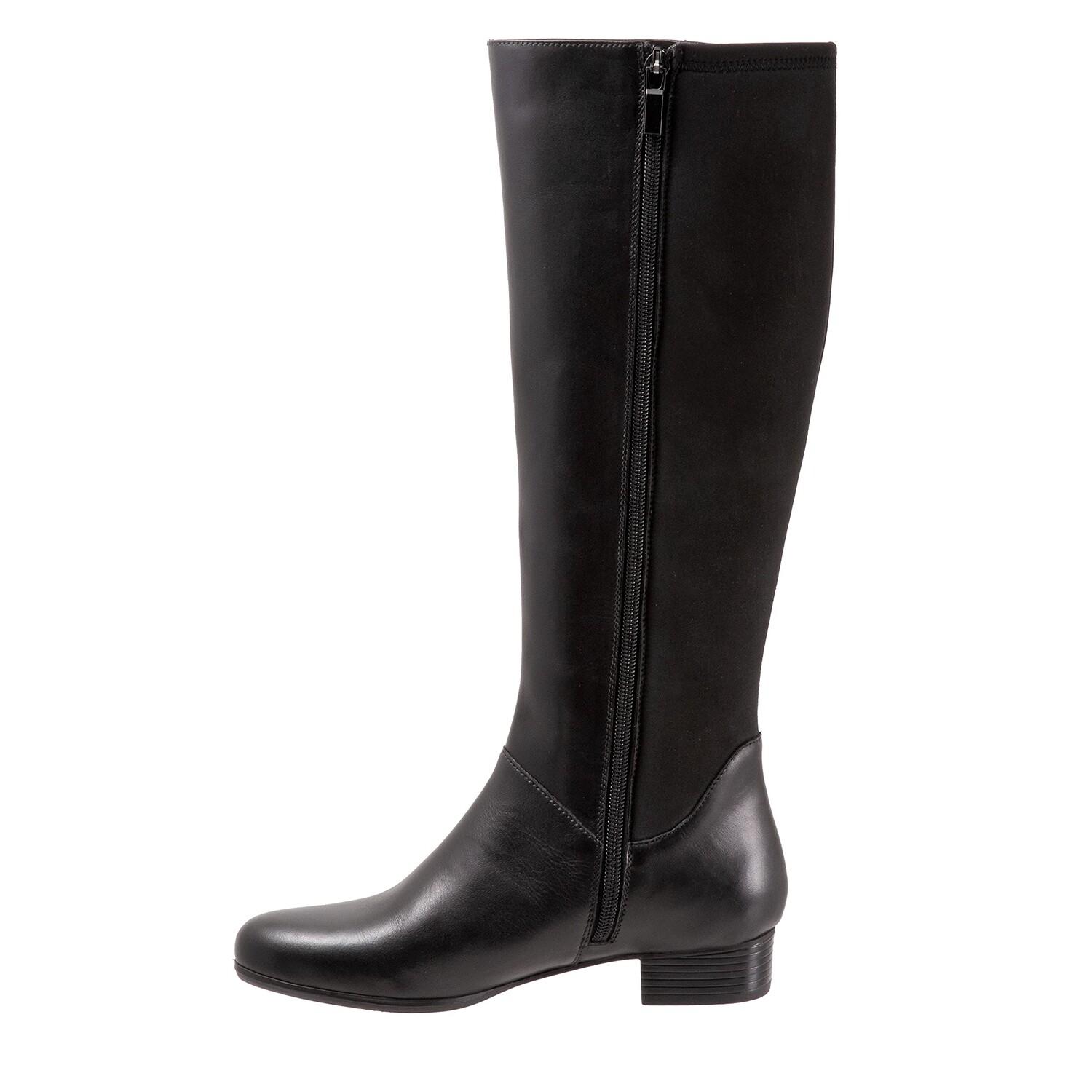 Ботинки для верховой езды Trotters Misty поднимут ваш стиль в холодную погоду на новый уровень. Эти высокие ботинки до колена имеют верх из гладкой кожи с эластичной вставкой сзади для индивидуальной подгонки. Боковая молния для легкого надевания и снятия. Мягкая и дышащая текстильная подкладка. Мягкая текстильная стелька. Резиновая подошва с наборным каблуком. Импортные размеры: • Высота каблука: 1 дюйм • Голенище ботинка: 15,25 дюйма • Окружность голенища: 14,5 дюйма • Вес одной обуви: 14,5 унций