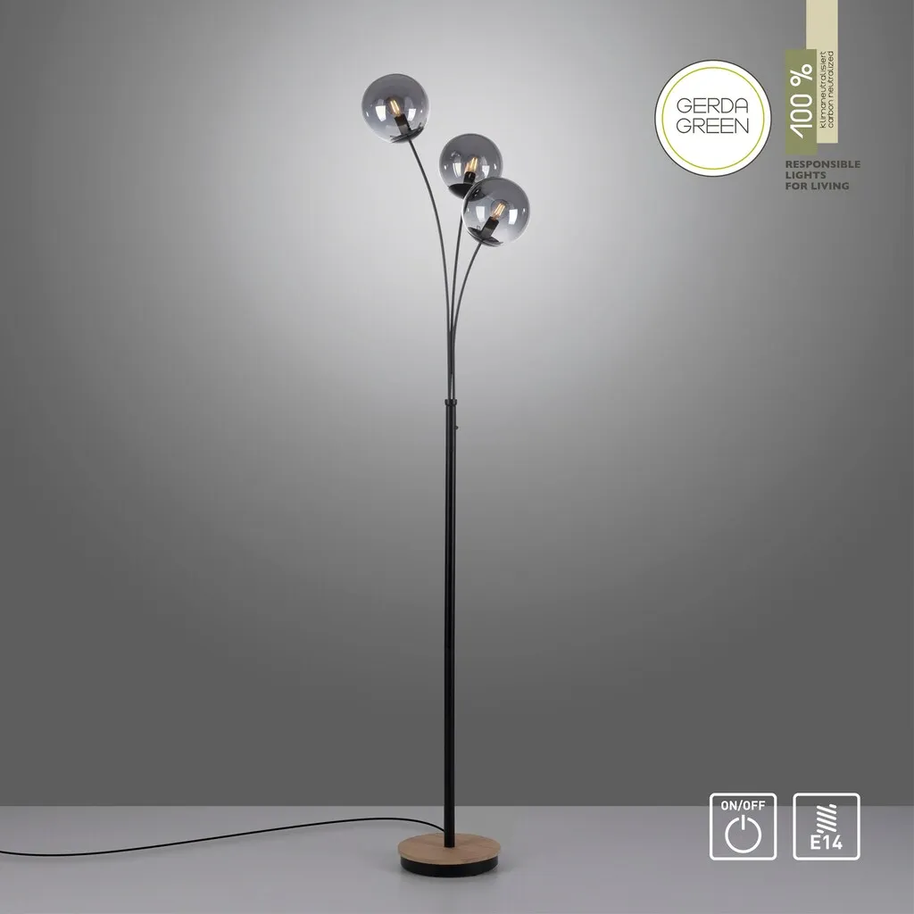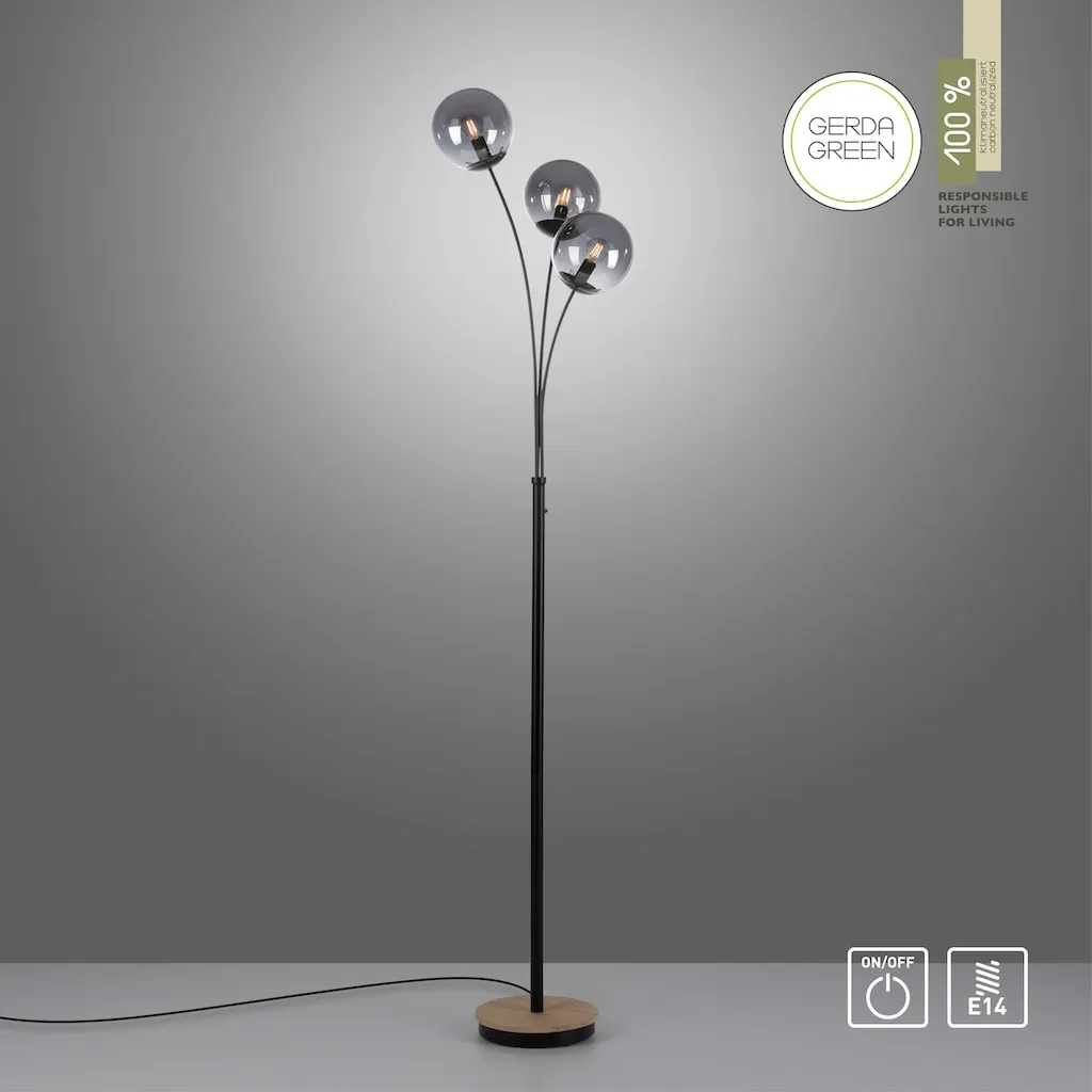 Торшер GREEN WIDOW поражает своим вечным дизайном в классическом черном цвете. Сочетание железа, обработанной маслом дубовой древесины и дымчатого стекла делает светильник настоящим украшением интерьера. Оснащенный качающимся выключателем, он обеспечивает удобное управление. Три патрона E14 позволяют использовать лампы с максимальной мощностью 25 ватт каждая (лампы в комплект не входят). Выберите лампу по своему вкусу. Три стекла дымчатого цвета придают светильнику загадочность и создают приятный приглушенный свет. Все компоненты этого торшера были на 100% климатически нейтрализованы. Создайте гармоничную атмосферу и подчеркните свою приверженность устойчивому развитию. Наполните свои комнаты мягким светом и наслаждайтесь ощущением того, что вы вносите вклад в охрану окружающей среды.