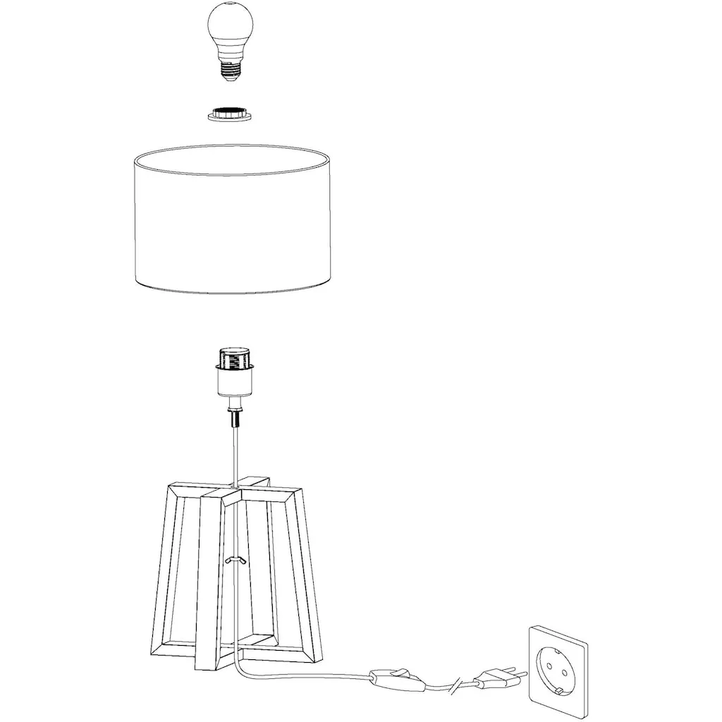 Оригинальная деревянная конструкция служит основанием и одновременно привлекает внимание в настольной лампе »Chietino 1« от Eglo. Кроме текстильного абажура, она также оснащена патроном E27 для подходящей лампы.