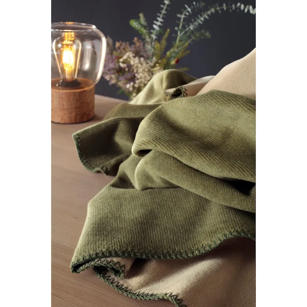 Плед для дома Melange Doubleface с окантовкой декоративным швом Biederlack, оливковый/бежевый