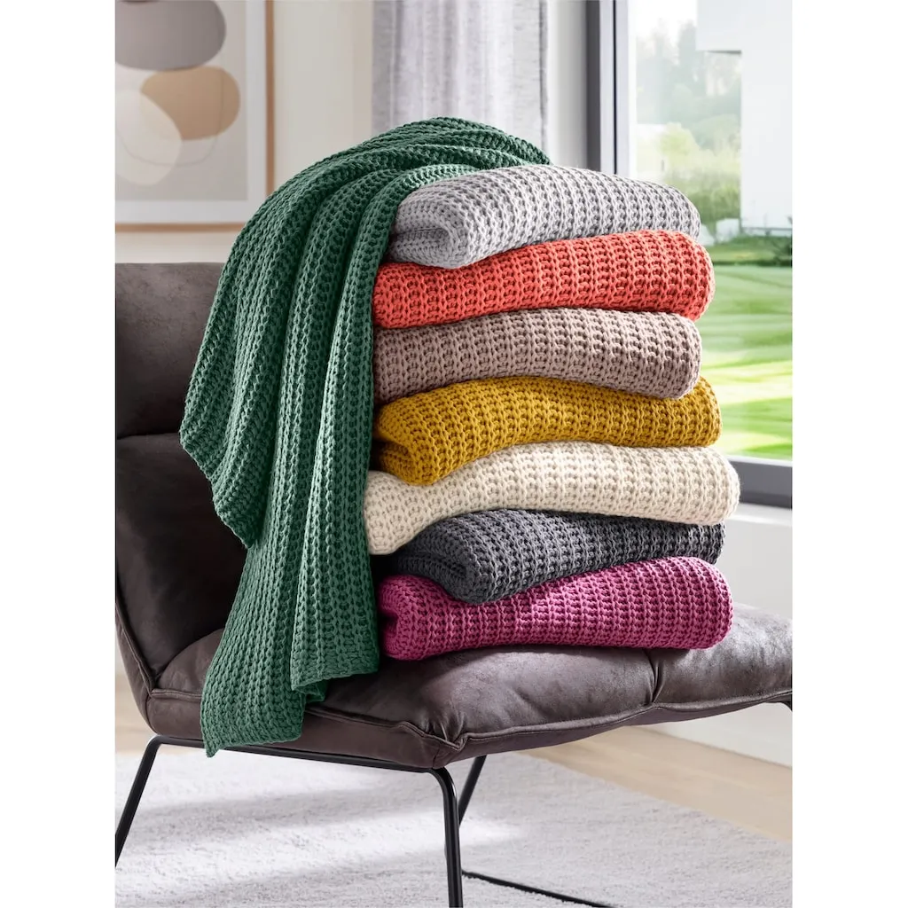 Модный крупный трикотаж в многих любимых цветах! Плед - идеальный партнер для уютного времяпровождения. 100% полиакрил.
