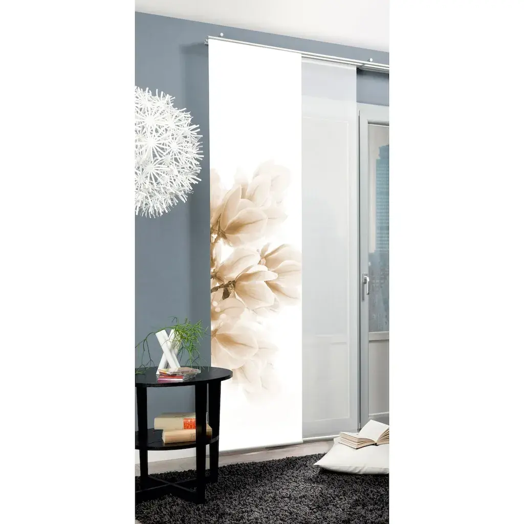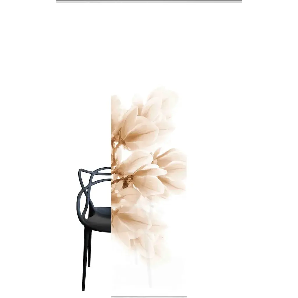 Штора-панель, закрывающая обзор, в элегантной шелковой оптике с легкими эффектами. С красивым цветочным мотивом в цифровой фотопечати. Высококачественная алюминиевая зажимная планка позволяет индивидуально и без проблем укоротить изделие. В комплекте каретка для панелей с роликами и скользящими элементами x для всех популярных карнизов. 100% полиэстер.