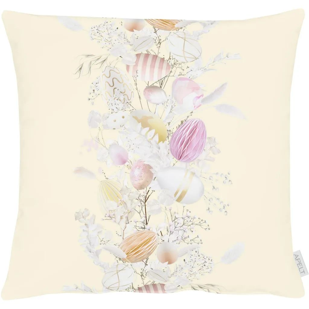 Прекрасный пасхальный мотив от компании Apelt. Модный дизайн с пасхальными яйцами и цветами. Элегантная, неприхотливая сатиновая ткань из серии Happy Easter экологически безопасно напечатана цифровым способом и разработана с большой внимательностью к деталям. Как подушка с практичной молнией. Высококачественный материал состоит из 70% полиэстера и 30% хлопка, легко ухаживать. Проверено на отсутствие вредных веществ по стандарту STANDARD 100 by OEKO-TEX и произведено в Германии. Машинная стирка при 30°C в деликатном режиме, сушить во влажном виде, гладить на уровне 2 точки.
