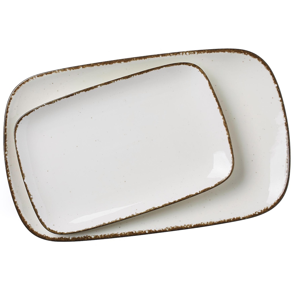 Цвет Название цвета: натуральный Материал Материал: фарфор Комплектующие Тарелки: 2 Примечания Уход: можно мыть в посудомоечной машине Информация о продукте Комплектация: 1 тарелка 24 x 15,5 см; 1 тарелка 33 x 20 см