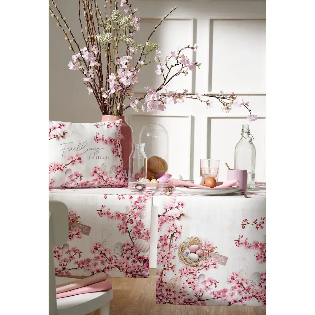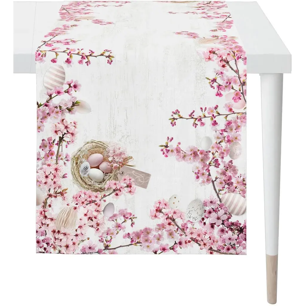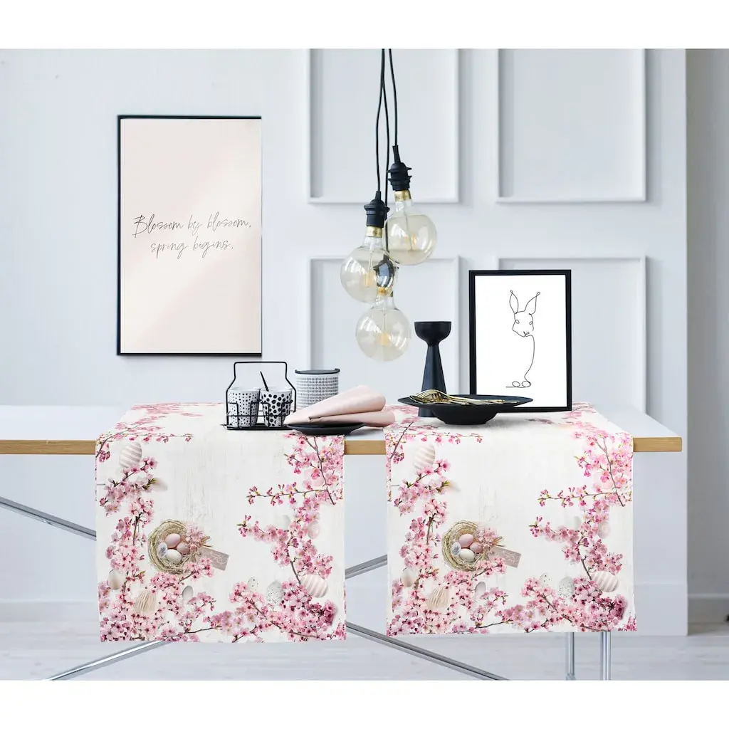 Пасхальный мотив, цветущая вишня, дорожка на стол, столовое белье