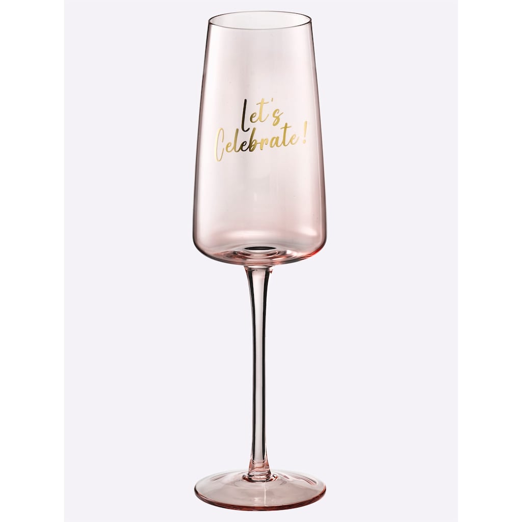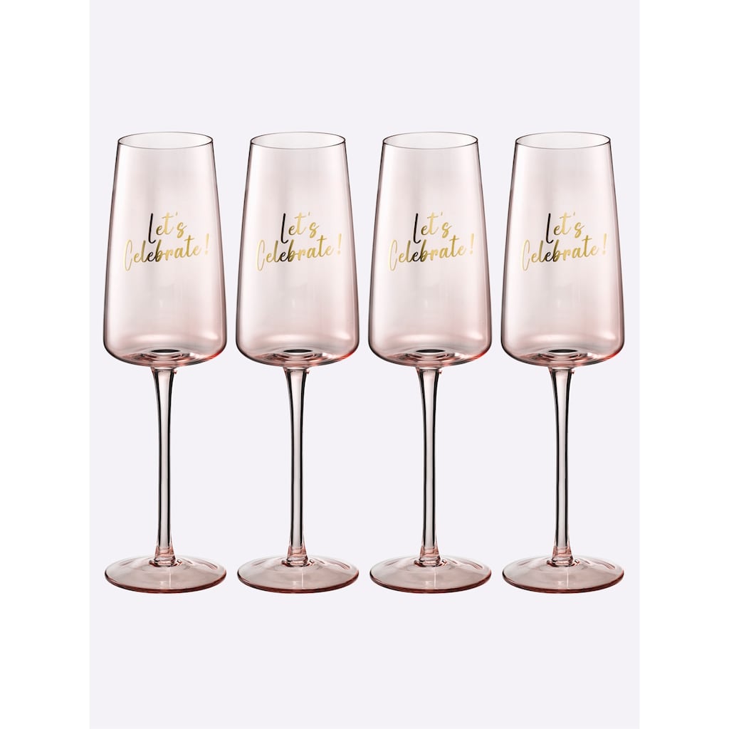 Набор из 4-х стаканов. Бокалы для шампанского из стекла розового цвета. С золотой надписью LET'S CELEBRATE.