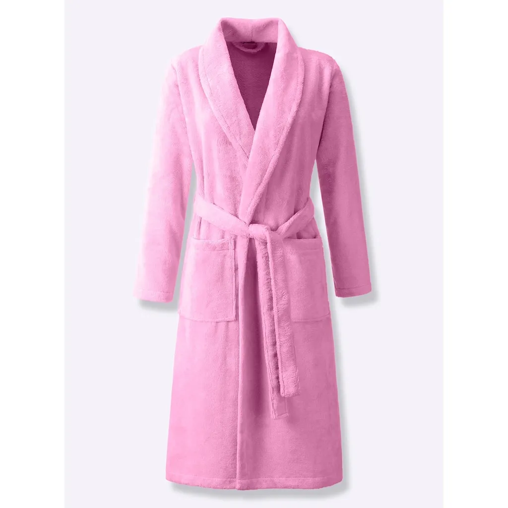 Халат из уютного плюшевого махрового материала. Снаружи содержание полиэстера обеспечивает мягкость на ощупь. Внутри впитывающий хлопок заботится о коже. Шаль-воротник, пояс и накладные карманы. 50% хлопок, 50% полиэстер.