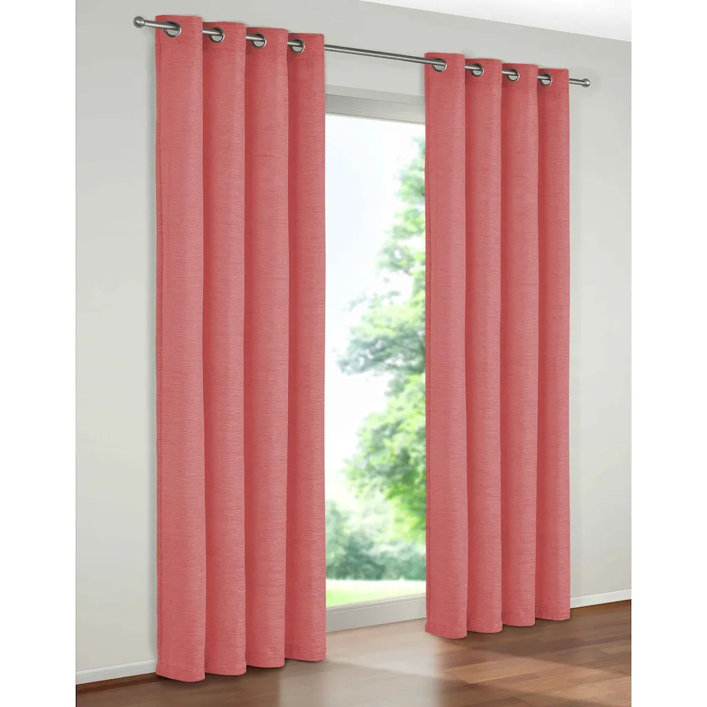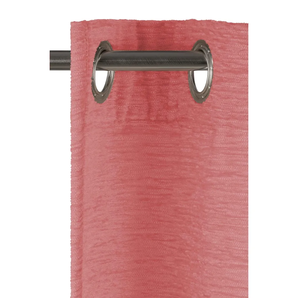Размеры и вес: Ширина: 132 см Высота: 145 см Детали Крепление: люверсы Особенности и функции Функции: энергосберегающая Внешний вид/стиль Цвет: розовый Прозрачность: непрозрачный Структура поверхности: текстурированная Дизайн: однотонный Материал Вид материала: шенилл Состав материала: поверхность: 100% полиакрил Материал: полиакрил Крепежный Материал: металл / хромированный Комплектация Количество предметов: 1 шт. Рекомендации по уходу Уход: стирка при 30°C деликатная Дополнительная информация Примечание по декору: указанные размеры - это размеры ткани; готовое оформление окна уменьшает ширину примерно вдвое. Примечание по креплению: крепление с помощью люверсов (диаметр примерно 35 мм) на карнизе. Качество Примечание по типу материала: ткань шенилл - это штофа, сотканная из объемной пряжи. Тяжелая ткань с бархатистой поверхностью обеспечивает защиту от холода и шума.