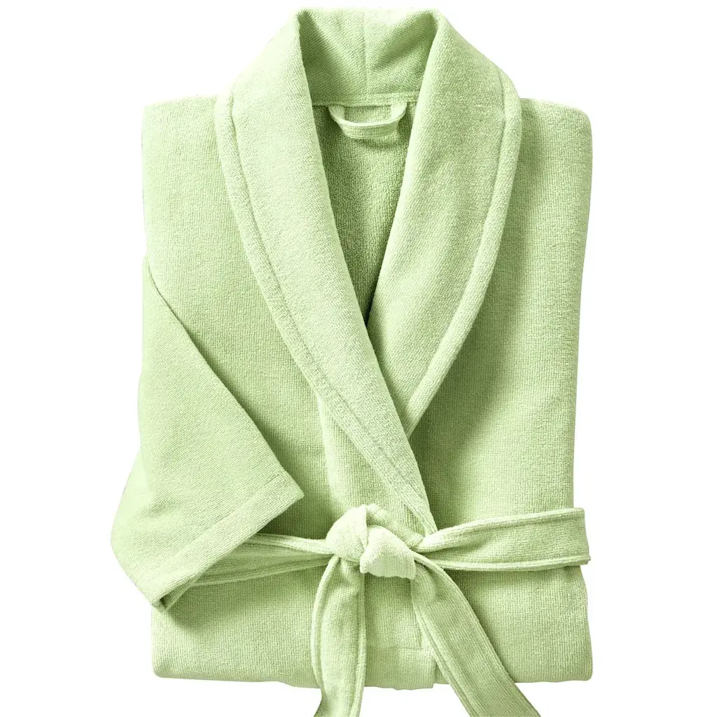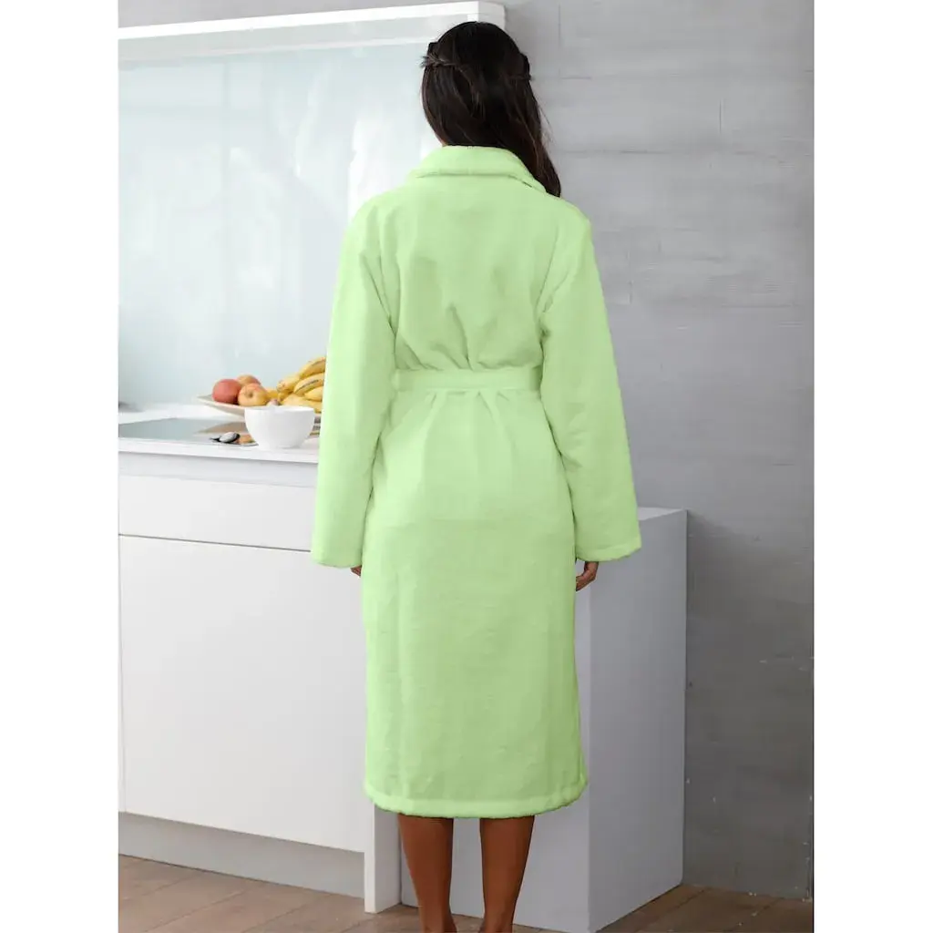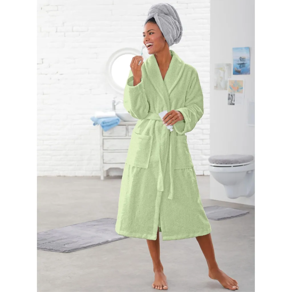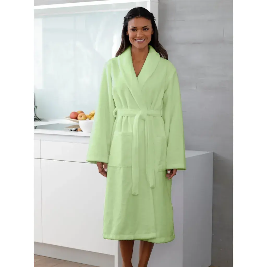Халат из уютного плюшевого махрового материала. Снаружи содержание полиэстера обеспечивает мягкость на ощупь. Внутри впитывающий хлопок заботится о коже. Шаль-воротник, пояс и накладные карманы. 50% хлопок, 50% полиэстер.