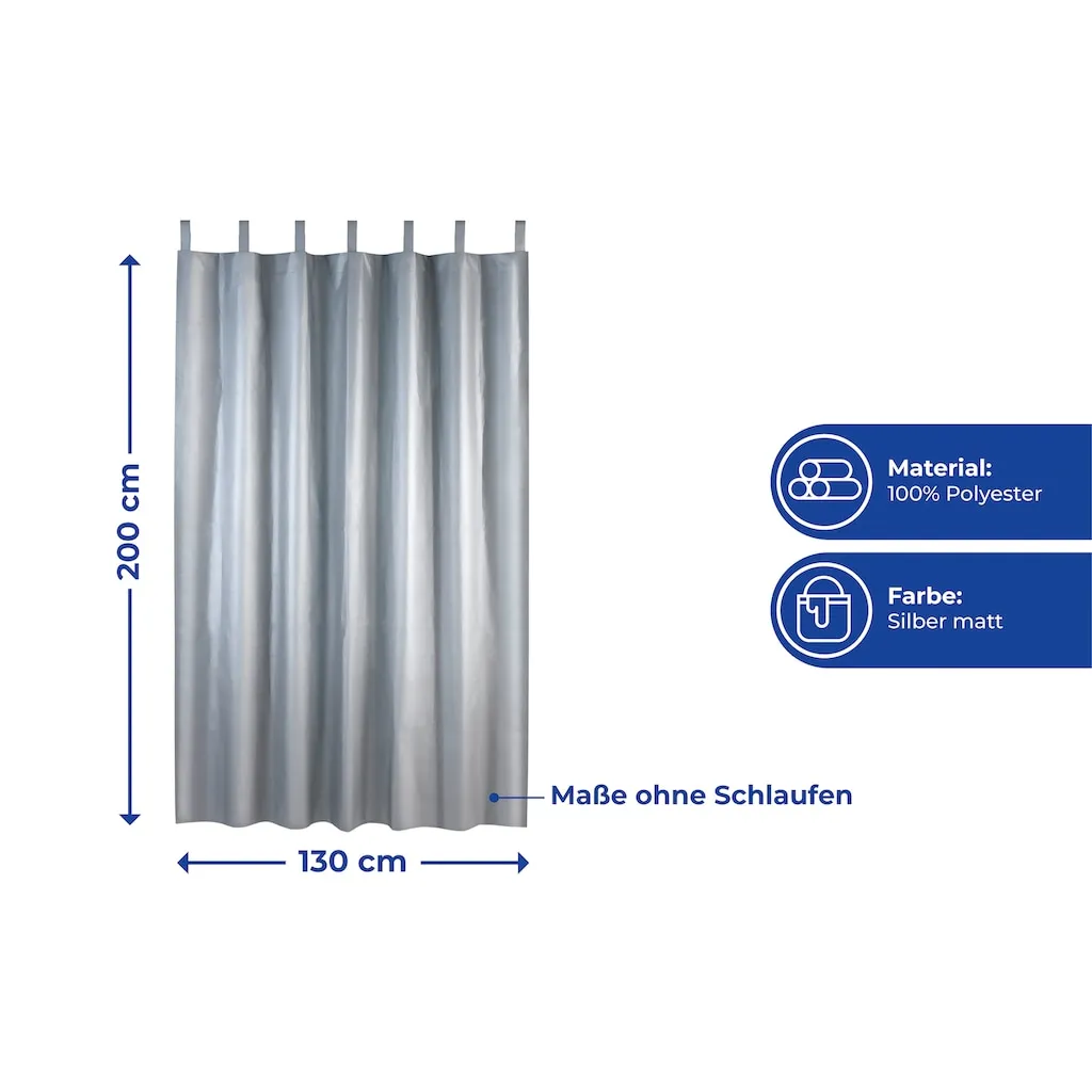 Летом и зимой - идеальный климат: плотная штора надежно изолирует от тепловых и холодных мостиков, таких как окна и двери. Летом она затемняет спальни или жилые комнаты и препятствует попаданию дневного тепла. Зимой термоштора предотвращает потерю тепла через стеклянные двери или окна и помогает снижать энергозатраты. Термоштора легко надевается на карниз или натянутый шнур с помощью петель. Ее сдержанный серебристый оттенок подходит к любому современному интерьеру.