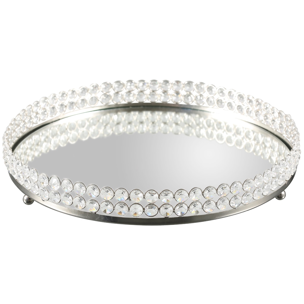 Декоративный поднос, из алюминия, с декоративными камнями из ограненного стекла, с зеркальным дном, размеры (Ø/В): 36/5 см