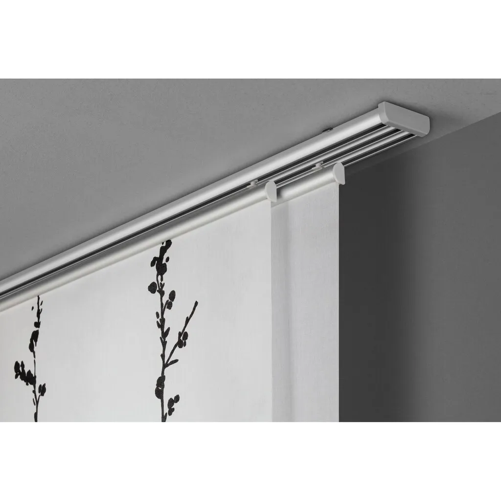 Верхняя и нижняя алюминиевые панели для надежного зажима ткани, Подходит для раздвижных штор (ширина 60 см), Подходит для подвешивания на карнизах, Включена инструкция по монтажу, Простое крепление без шитья