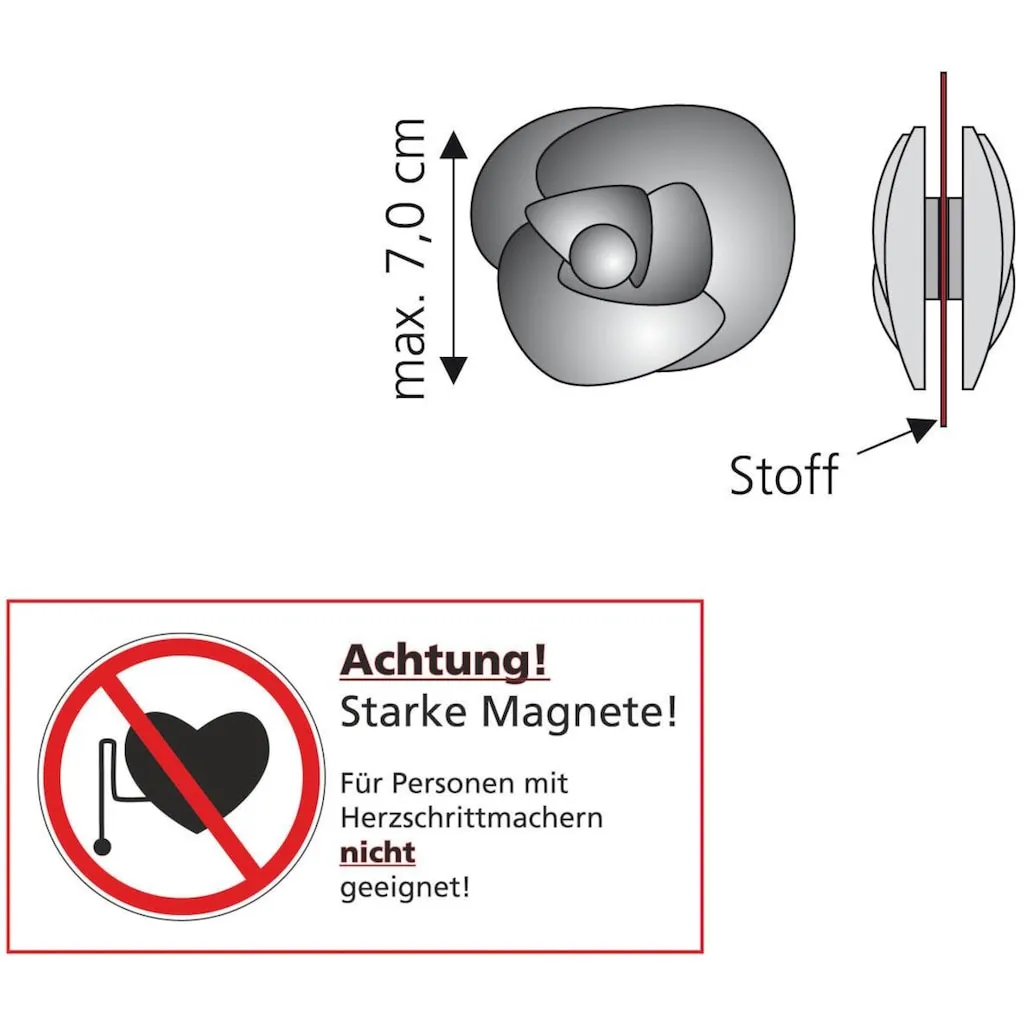 Этот декоративный магнит в форме розы с диаметром 70 мм очень универсален в использовании. Вы можете использовать его как магнит на холодильник, для металлических досок для заметок или как украшение на занавесках. Создавайте индивидуально и по своему желанию. В набор входят два магнита. Материал: 10% магнит, 90% пластик.