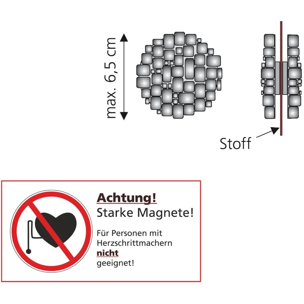 Этот декоративный магнит с каменной отделкой диаметром 65 мм очень универсален в использовании. Вы можете использовать его как магнит на холодильник, для металлических досок для заметок или как декоративный элемент на шторах. Создавайте индивидуально и по своему желанию. В набор входят два магнита. Материал: 10% магнит, 90% пластик.