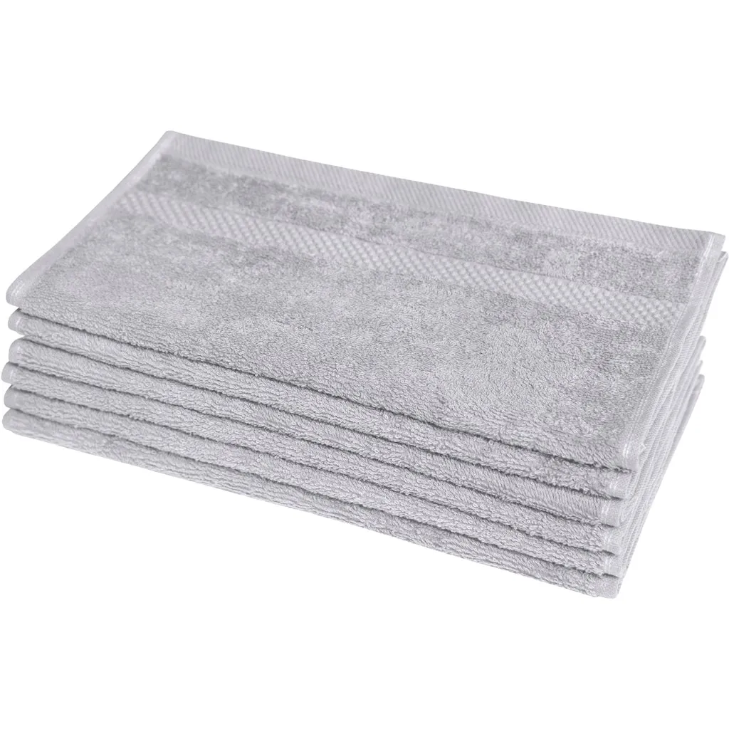 Наименование изделия Количество частей: 6 шт. Цвет Название цвета: серебро Внешний вид/стиль Внешний вид: однотонный Размеры Ширина: 30 см Длина: 50 см Материал Тип материала: махровая ткань Состав материала: верх: 100% хлопок Плотность: 450 г/м² Указания Рекомендации по уходу: машинная стирка при 60°C, легкий уход, возможность сушки в сушилке Информация о цвете: обратите внимание, что цвета на вашем мониторе могут отличаться от оригинальных оттенков. Информация о продукте Информация о бренде: Dyckhoff Тип полотенца: Набор полотенец Петля для подвешивания: есть Область использования: кемпинг, дом Дополнительная информация Сертификат OEKO-TEX Standard 100: Сертификат коллектива 09.0.67812