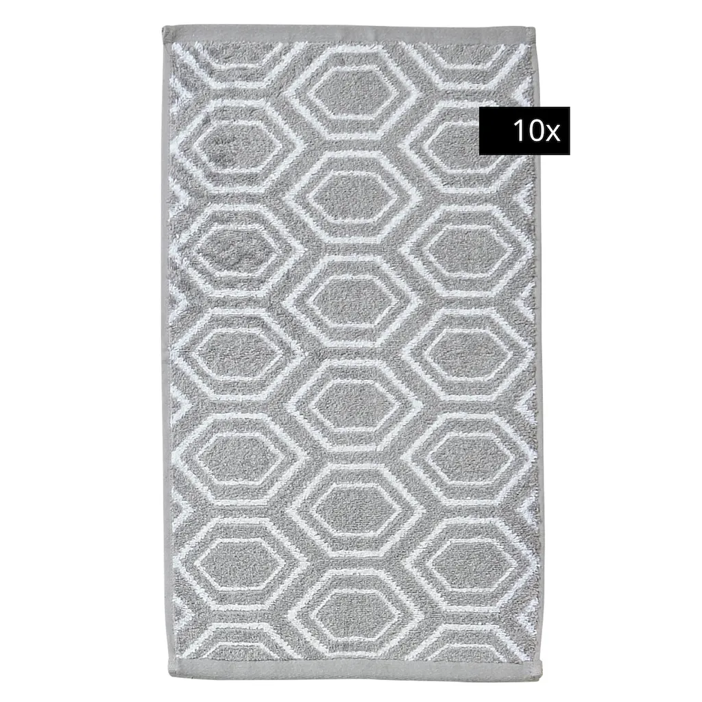 Наименование изделия: Количество деталей: 10 шт. Цвет Цветовое обозначение: серебристый Внешний вид/стиль: Внешний вид: этнический узор Логотип: тканый Размеры: Ширина: 30 см Длина: 50 см Материал: Тип материала: жаккардовое махровое полотно Состав материала: верхний Материал: 100% хлопок Плотность: 500 г/м² Окрашивание: окрашивание пряжей Материал: хлопок Инструкции по уходу: Машинная стирка при 60°C, глажка при низкой температуре, химическая чистка не допускается, подходит для сушки в сушильной машине Примечания о цвете: Обратите внимание, что цвета на вашем мониторе могут отличаться от оригинальных оттенков Предупреждения: Чтобы избежать повреждения изделия, держите острые, колющие или грубые предметы подальше от текстиля; держите подальше от источников огня и сигарет! Легковоспламеняющийся продукт; упаковочный Материал: храните в недоступном для маленьких детей и домашних животных месте. Опасность удушья; соблюдайте указания по уходу, указанные на изделии. Общая информация Исполнение: Серебро Детали продукта Информация о наборе: 10 гостевых полотенец Тип полотенца: гостевое полотенце Крепление: шнур