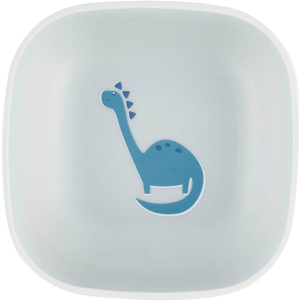 Материал Материал: полипропилен Внешний вид/стиль Форма тарелки: квадратная Внешний вид: с рисунком Рисунок: динозавр Цвет: серо-голубой Комплект Дополнительно в комплекте: 1x детский стакан; 1x детская миска; 1x детская тарелка; 1x вилка; 1x ложка Информация о продукте Область использования: домохозяйство Примечания Инструкции по уходу: подходит для посудомоечной машины