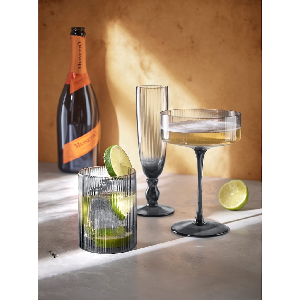 Набор из 4 бокалов для шампанского с современным волнистым дизайном.