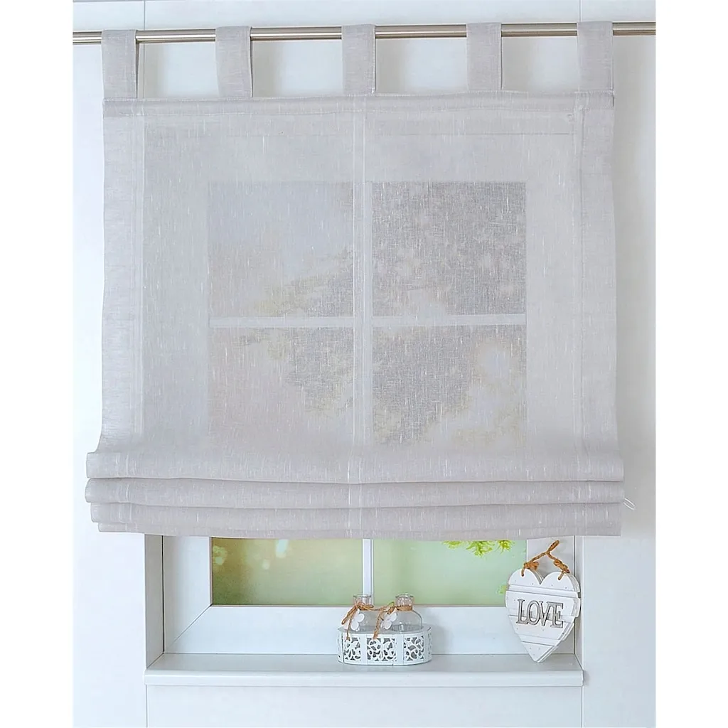 Римская штора Полупрозрачного качества с красивой структурированной льняной текстурой. С петлями для карниза. 100% полиэстер. Можно стирать.