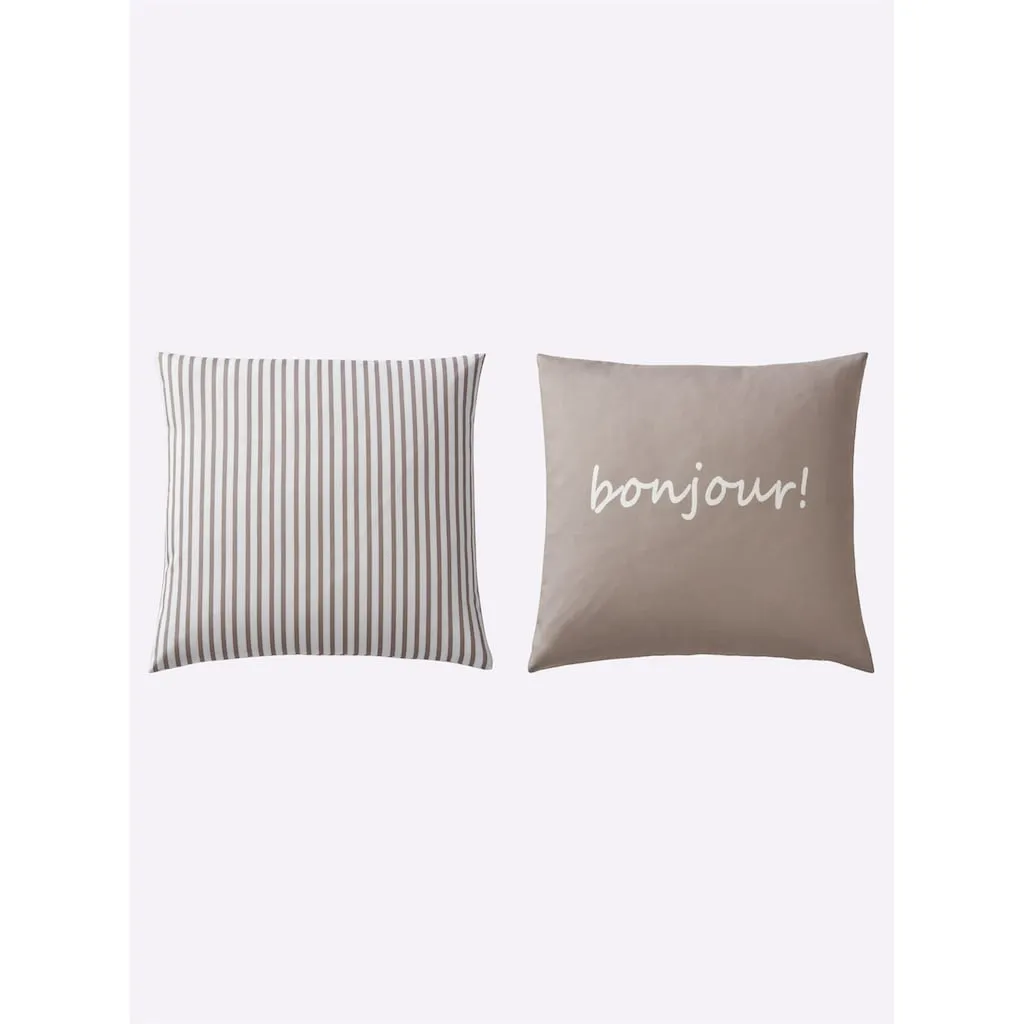 Наволочка 2 шт. Набор. Легкий блеск, ткань с эффектом канвы, цифровая печать. 1 шт. в полоску, 1 шт. с надписью BONJOUR. С молнией. 100% полиэстер. Можно стирать.