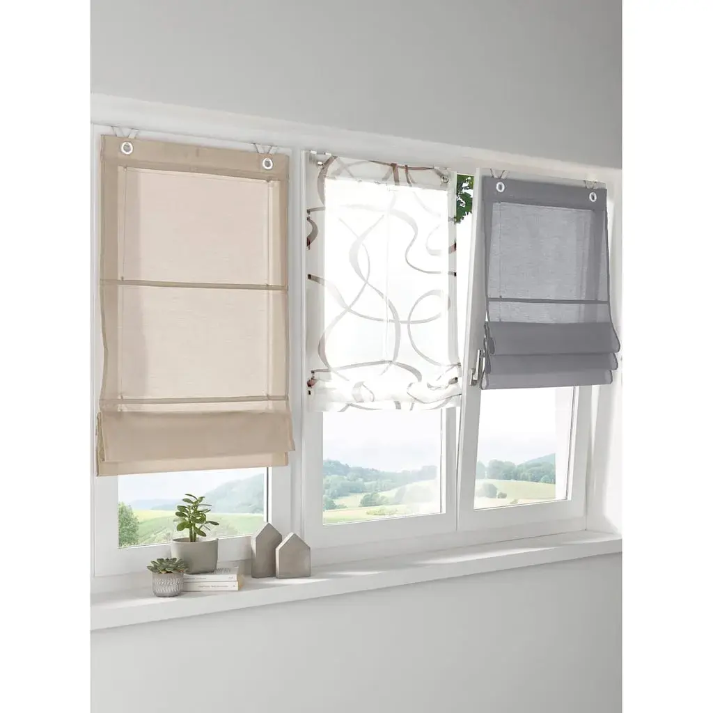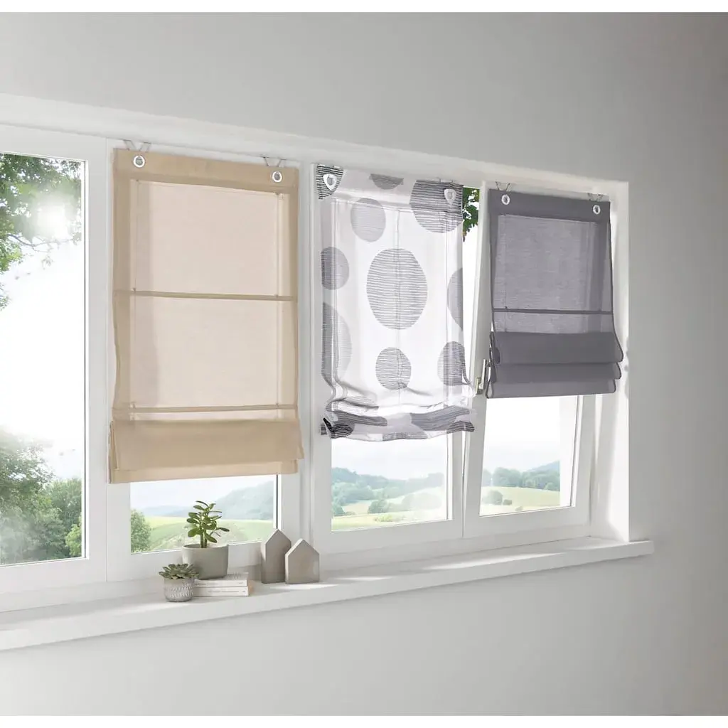 Римская штора с поперечными планками. Полностью непрозрачная. Информацию о размерах смотрите в интернете. 65% хлопок, 35% полиэстер.