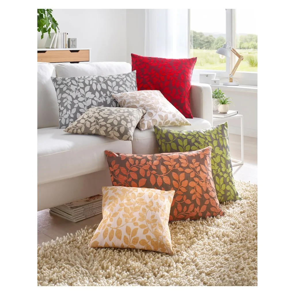 Наволочки с изысканным рисунком из листьев. Отдельные цвета отлично сочетаются друг с другом! 57% полиэстер, 43% полиакрил. Стирка в машине при температуре до 30 °C. Можно сушить в сушильной машине.