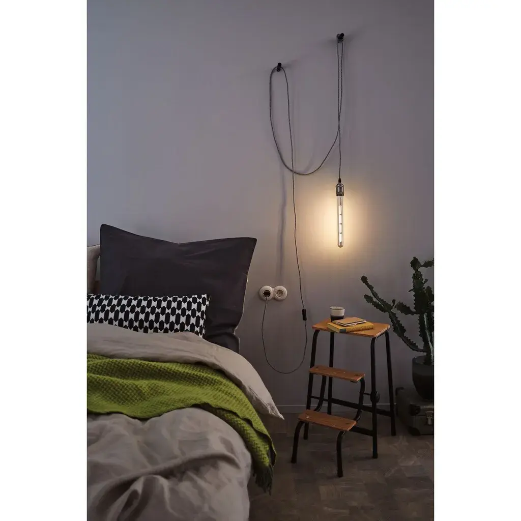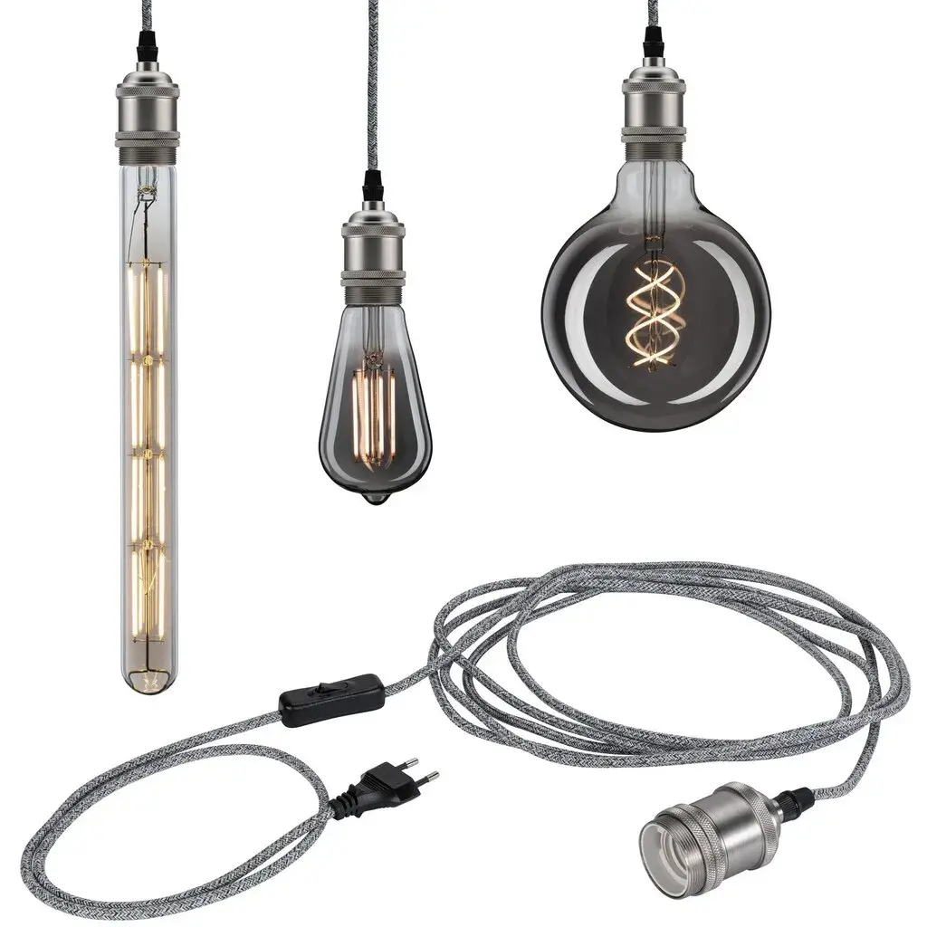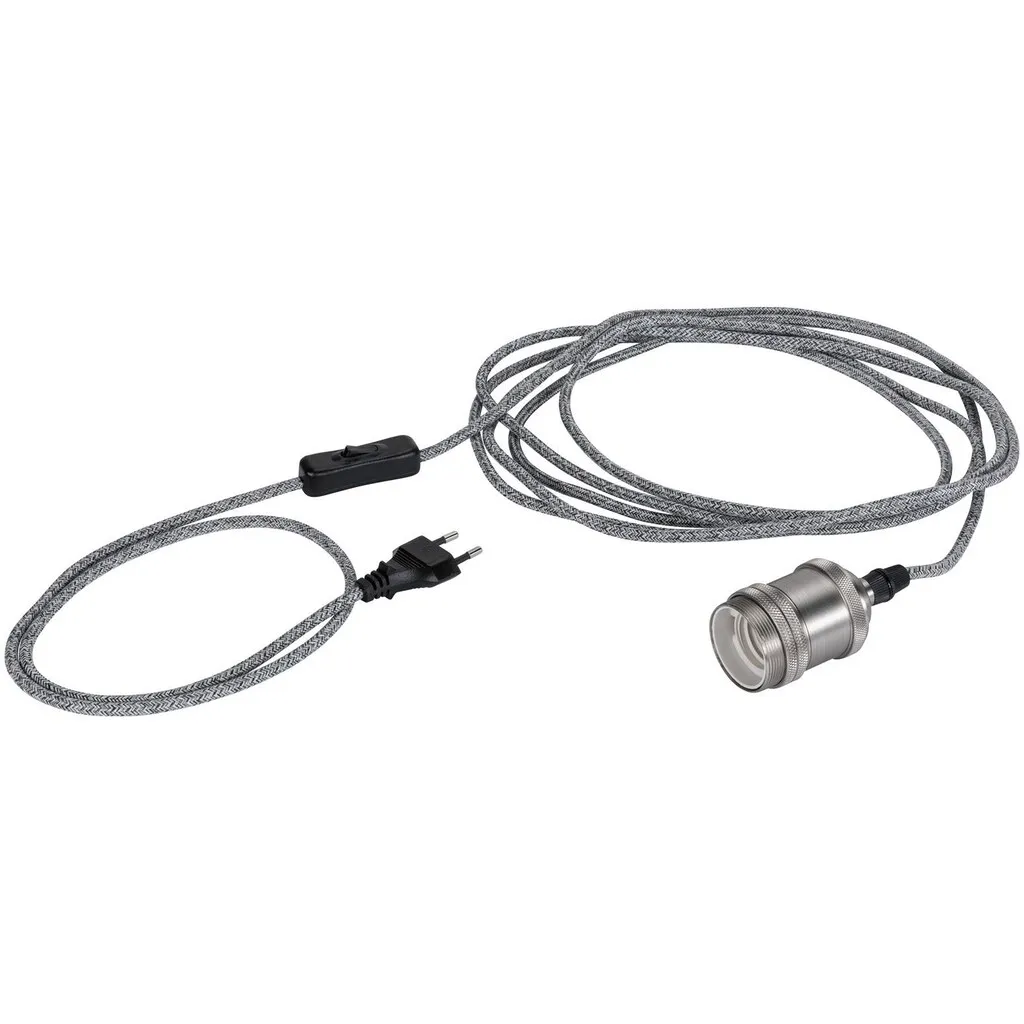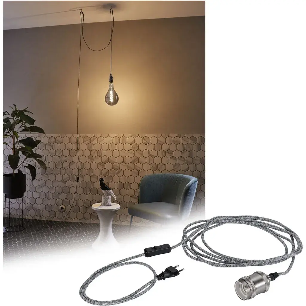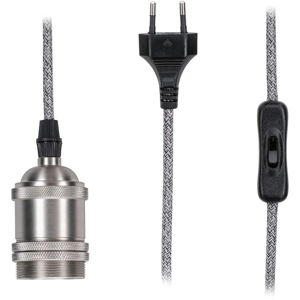 Подвесная лампа Eldar с кабельным выключателем представляет собой стильное освещение в ретро стиле. Подвесной светильник длиной 5 м оснащен евро-вилкой, с помощью которой его можно подключить напрямую к любой розетке. Цветовое сочетание текстильного кабеля и патрона E27 делает подвесной светильник декоративным элементом, притягивающим взгляд. Независимо от того, используется ли он отдельно или в составе ансамбля, в сочетании с декоративной лампочкой создаются индивидуальные световые сценарии.