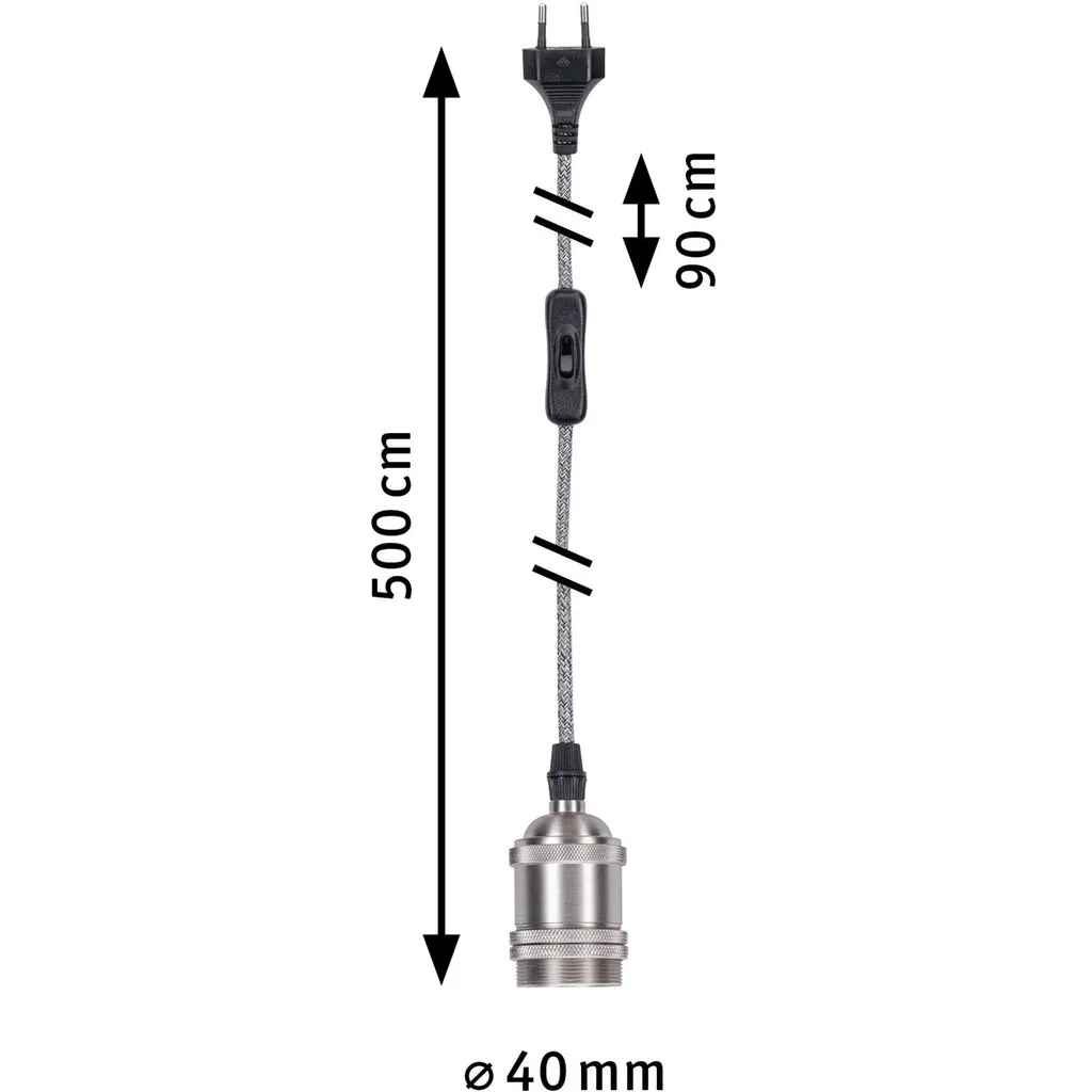 Оптика/Стиль Цвет: серый Материал Материал: каркаса: металл Размеры Подвеска: 500 см Диаметр: 4 см Длина кабеля: 500 см Информация о продукте Класс защиты: 2 Источник света: без лампы Количество плафонов: 1 Патрон: E27 Выключатель: выключатель на шнуре Модель: 79771 Тип питания: сетевой кабель Функции: включение/выключение Комплектация: инструкция по монтажу Область применения: внутри помещений Информация о бренде: Paulmann Licht GmbH была основана в 1978 году и является ведущим производителем брендов в отрасли освещения. Следуя девизу «Реализуй свои световые идеи», немецкая компания предлагает своим клиентам более 2500 светильников и систем для индивидуального освещения в доме и на улице. Большие разделы полного ассортимента управляются с помощью умных технологий. Внутренние дизайнеры, конструкторы и инженеры-электронщики компании при разработке продуктов совмещают технологии, дизайн и удобство для конечного клиента, обеспечивая высокое качество продукции Paulmann. Чтобы удовлетворить разнообразные потребности людей в уютном и индивидуализируемом освещении, компания Paulmann предоставляет множество идей и информации еще до покупки. Немецкая семейная компания с штаб-квартирой в Шпринге, Нижняя Саксония, насчитывает 450 сотрудников по всему миру и продает продукцию более чем в 40 странах Европы. Будучи членом сети Глобального договора ООН, Paulmann придает большое значение охране окружающей среды и социальной ответственности. Технические характеристики: - Степень защиты: IP20 - Вес: 0,39 кг - Напряжение: 230 В - Источник питания: сетевой штекер - Тип сетевого штекера: евро-плоский штекер (тип C-CEE 7/16) Примечания: - Технические данные: - Регистрационный номер WEEE в Германии: DE 39.236.390