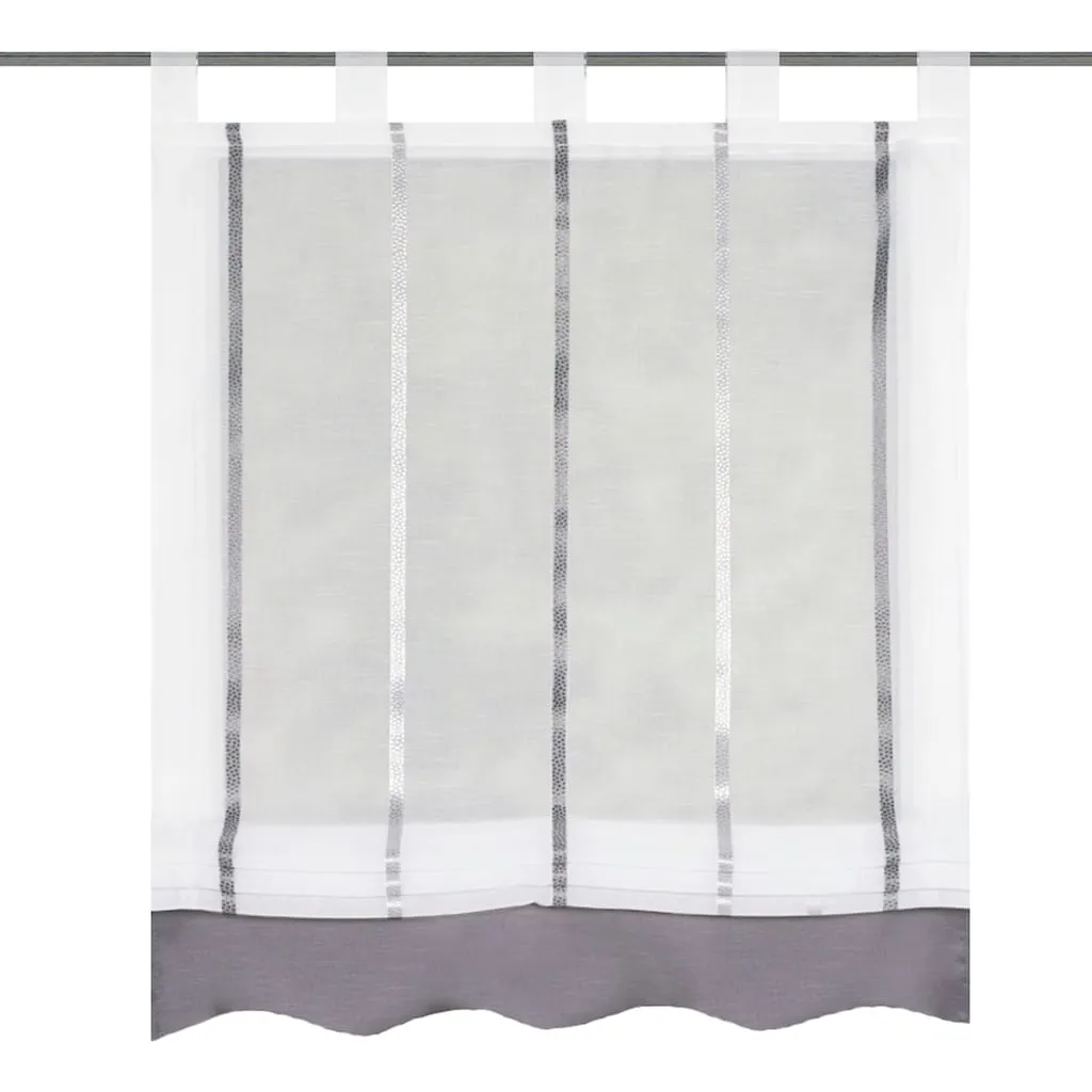 Римская штора из прозрачного вуали с цветными продольными полосами и подходящим декоративным воротником. Размеры см. в Интернете. 100% полиэстер. Можно стирать.