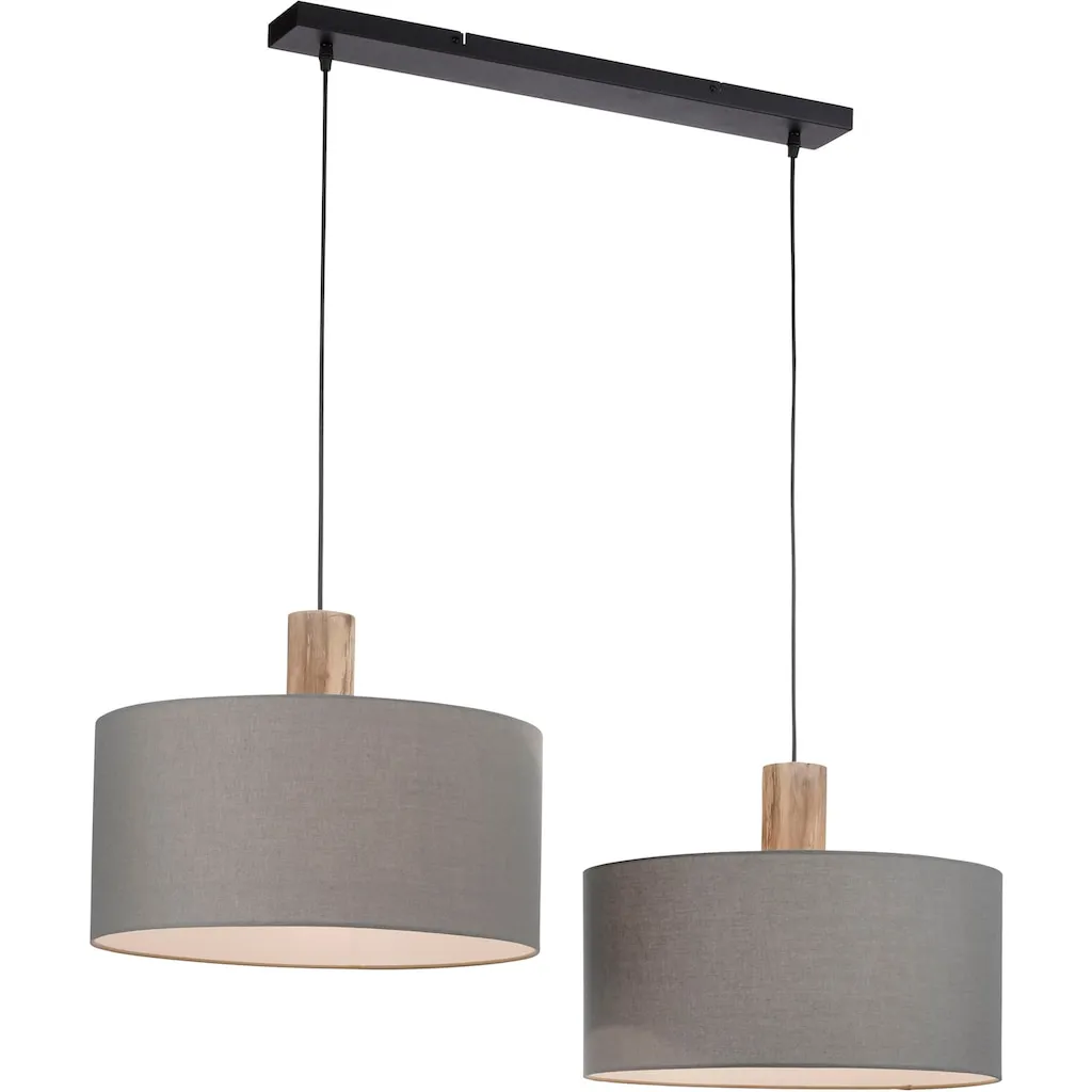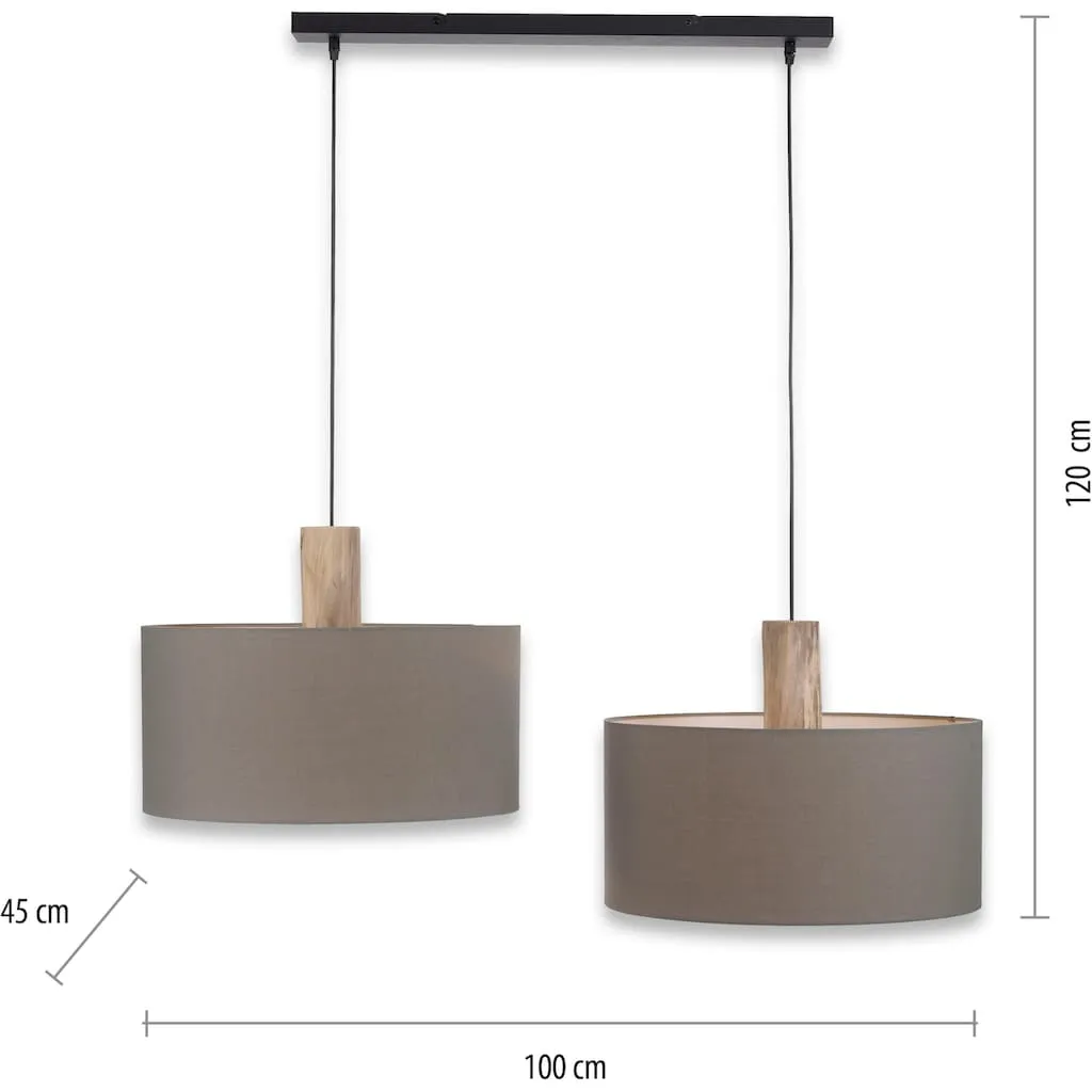 Подвесной светильник с простой и одновременно стильной внешностью, элементы из эвкалиптового дерева, подходит для 2 ламп E27 мощностью до 60 Вт каждая (не включены), диаметр абажура: 45 см, высота абажура: 22 см, абажуры выполнены из ткани