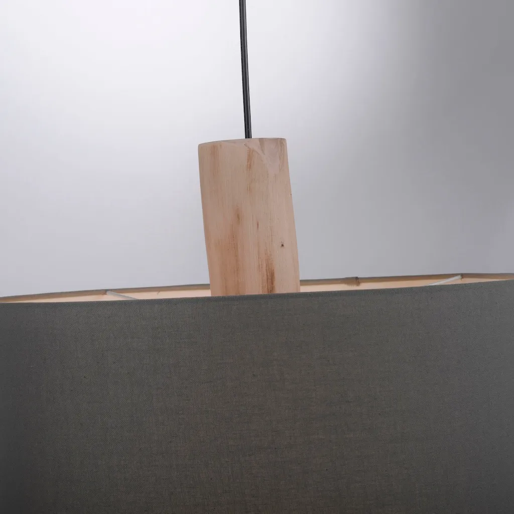 Подвесной светильник LINEN придает комнате уют и стиль. Двухламповый подвесной светильник с серыми текстильными абажурами и деревянными элементами создает естественный вид, который хорошо вписывается в скандинавский интерьер. Светильник рассчитан на два источника света E27 мощностью до 60 Вт. Свет теперь проходит через текстильные абажуры без бликов и равномерно освещает пространство, а вниз исходит без препятствий через отверстие. Особенно эффектно он смотрится над обеденным столом.