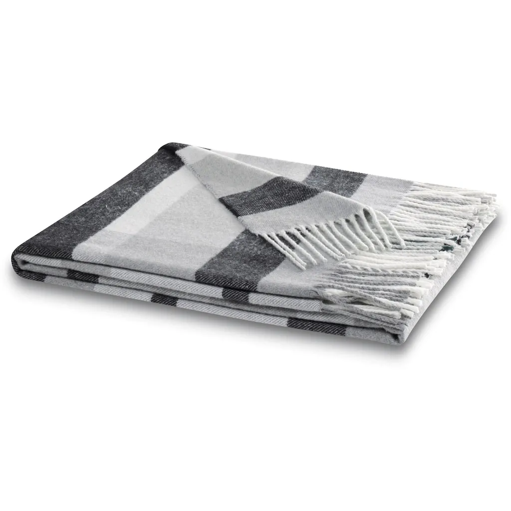 Плед Harmony в современном клетчатом стиле, с бахромой Biederlack, серый