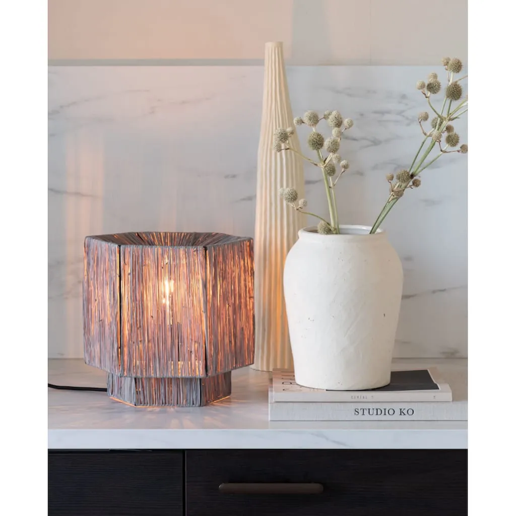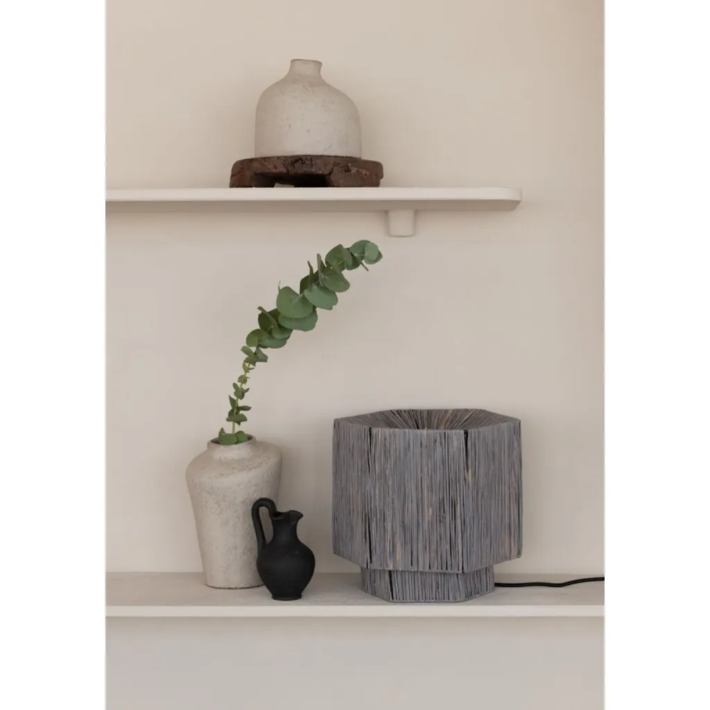 Настольная лампа из рафии, Панама, круглая/восьмиугольная, диаметр 28 см, высота 26 см, серая, размер S