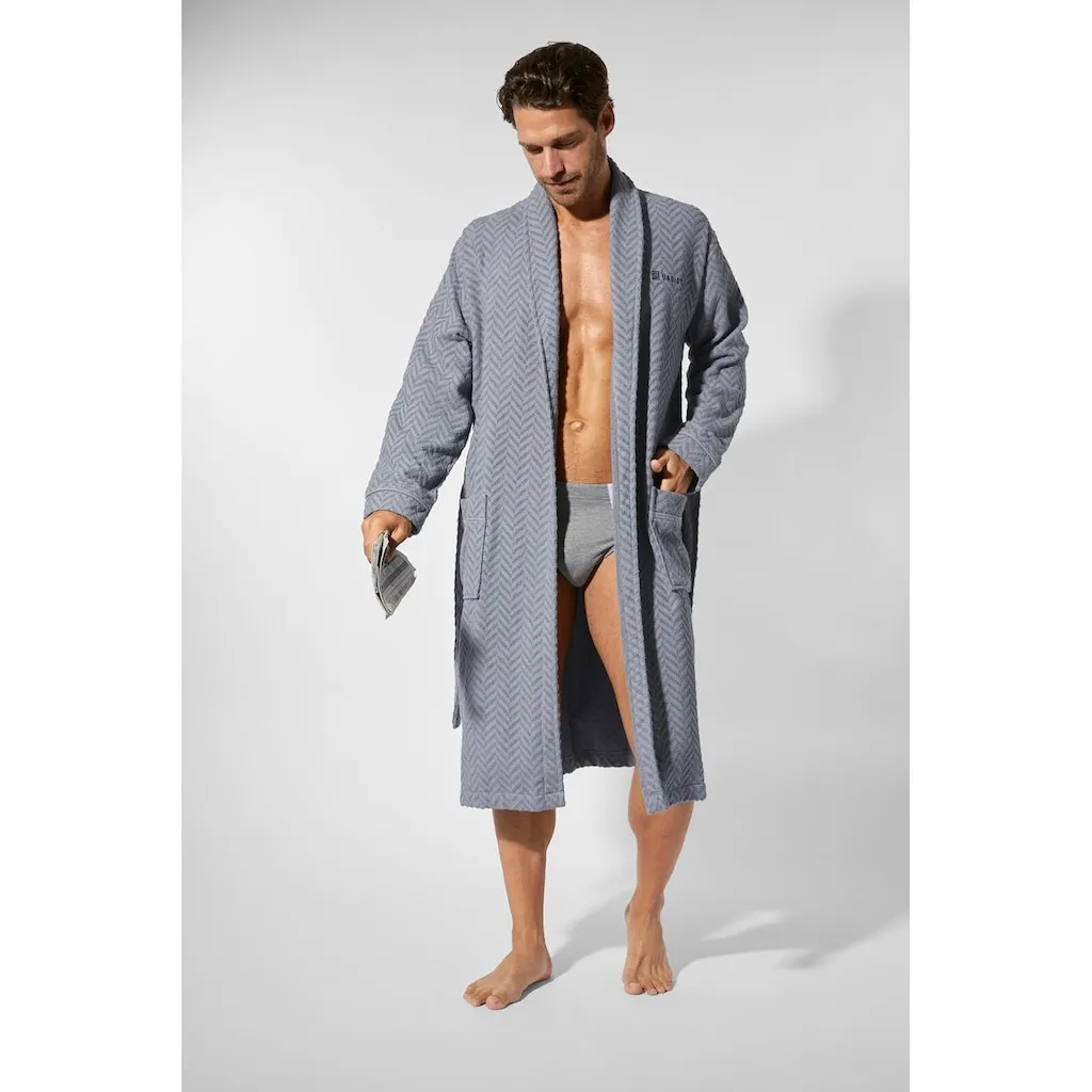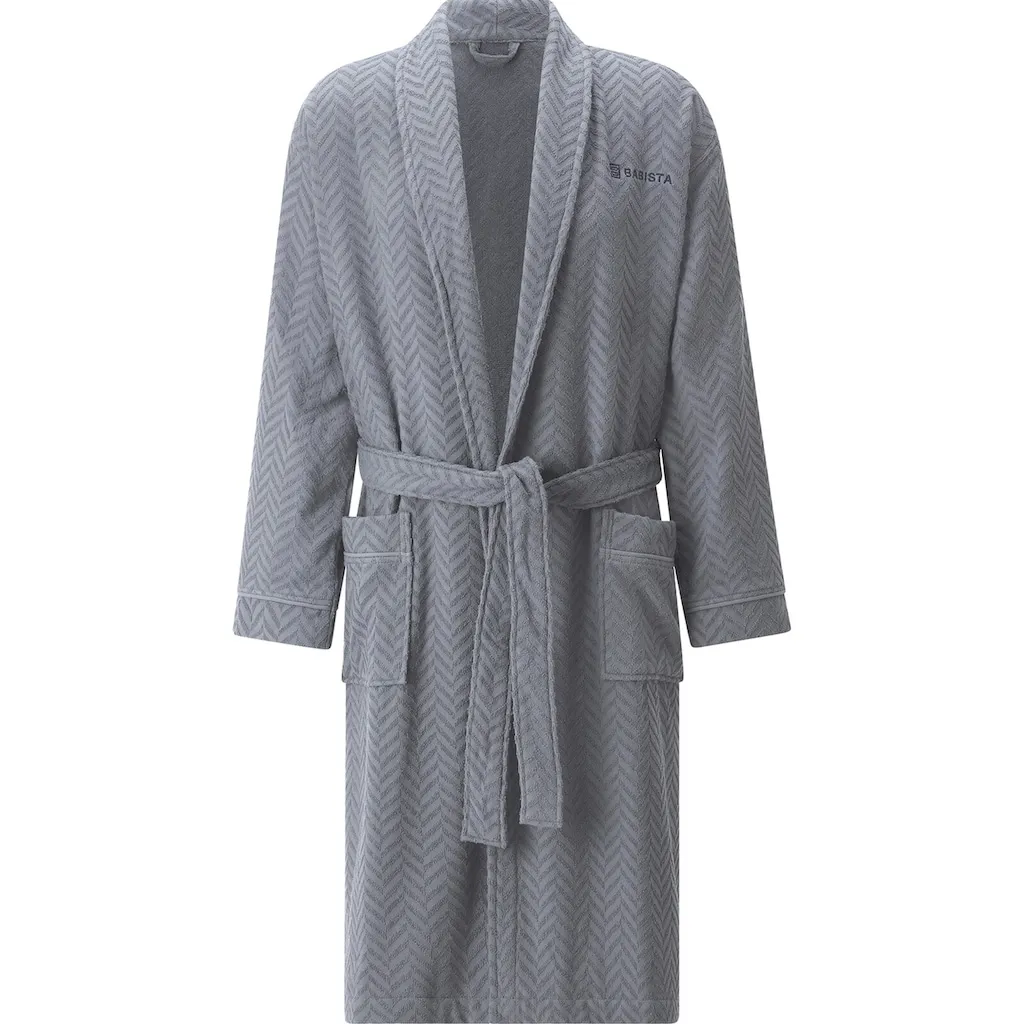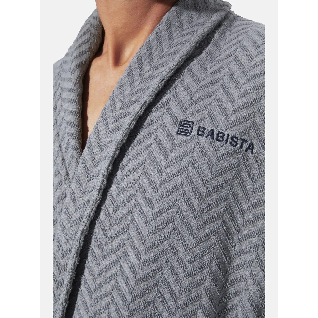 BABISTA уже 30 лет радует мужчин, ценящих моду и качество. Халат TALDOR от BABISTA приносит элегантность в ваши моменты уюта! Этот стильный халат впечатляет своим сплошным узором «елочка» и широким шалевым воротником, который добавляет нотку роскоши любому гардеробу. Элегантный пояс обеспечивает оптимальную посадку и удобно проходит через две петли. На левой стороне груди привлекает внимание деликатная вышивка. Два накладных кармана спереди предоставляют достаточно места для мелких принадлежностей. Позвольте себе полный комфорт!