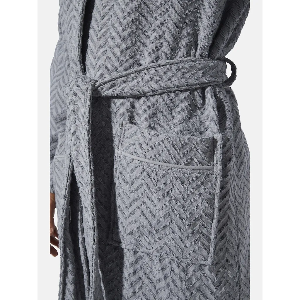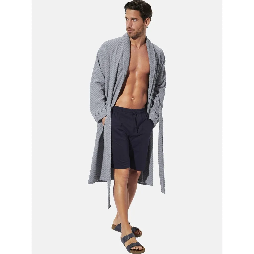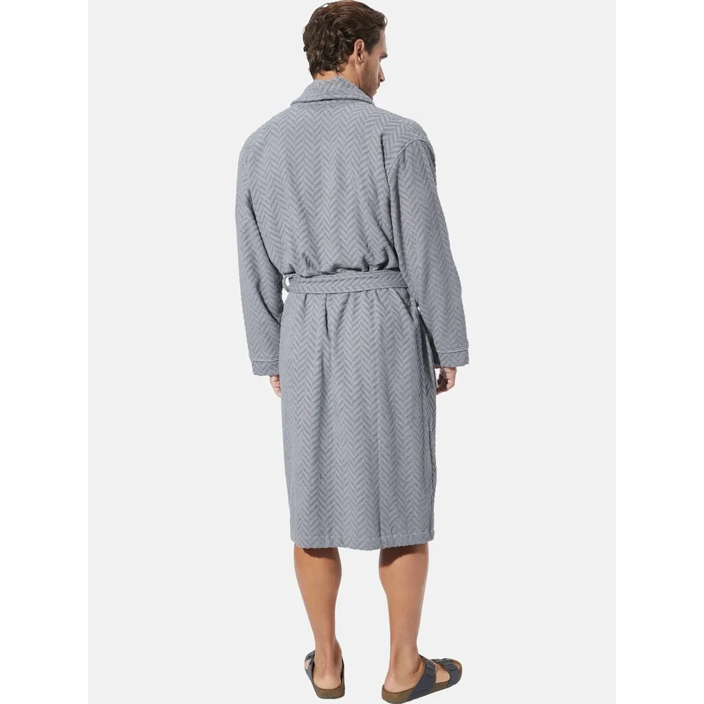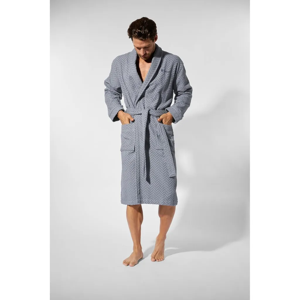 BABISTA уже 30 лет радует мужчин, ценящих моду и качество. Халат TALDOR от BABISTA приносит элегантность в ваши моменты уюта! Этот стильный халат впечатляет своим сплошным узором «елочка» и широким шалевым воротником, который добавляет нотку роскоши любому гардеробу. Элегантный пояс обеспечивает оптимальную посадку и удобно проходит через две петли. На левой стороне груди привлекает внимание деликатная вышивка. Два накладных кармана спереди предоставляют достаточно места для мелких принадлежностей. Позвольте себе полный комфорт!