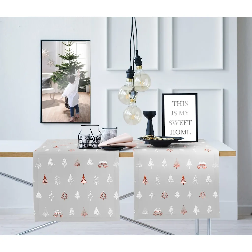 Модный зимний мотив от компании Apelt. Прекрасный рождественский дизайн с повсеместно нарисованными вручную силуэтами елей и маленькой машинкой - для сезонного рождественского декора, в двух красивых цветовых вариантах. Множество различных размеров, первоклассная отделка, разные размеры подушек, также в виде романтических подушек-звезд, сердечек и елочек, практичные фартуки, элегантные дорожки на стол, большие скатерти, салфетки и столовые ленты с изысканной заостренной отделкой и в комплекте. Все изделия оформлены с уголком для письма. Наволочка снабжена практичной застежкой-молнией. Качественный цифровой принт изготовлен из 75% полиэстера и 25% самой тонкой хлопковой ткани. Можно стирать при 30°C в щадящем режиме, подушки перед стиркой вывернуть на изнанку, сушить во влажном виде, гладить при двух точках. Продукция прошла проверку на наличие вредных веществ по стандарту Ökotex-100 и произведена в Германии.