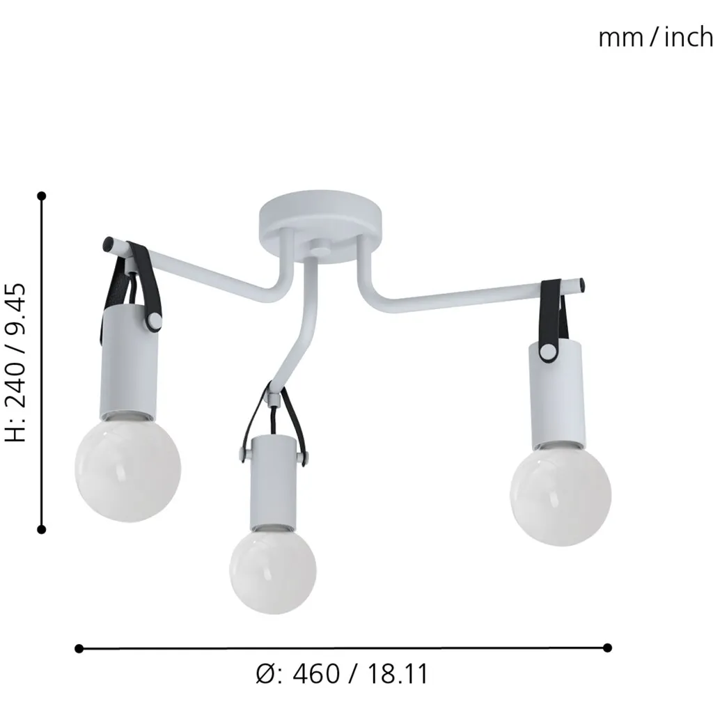 С потолочной лампой »Apricale« от Eglo вы прекрасно освещаете комнату. Три цоколя E27, удерживаемые кожаными ремнями на стальной конструкции, ждут, когда вы оснастите их подходящими лампочками.