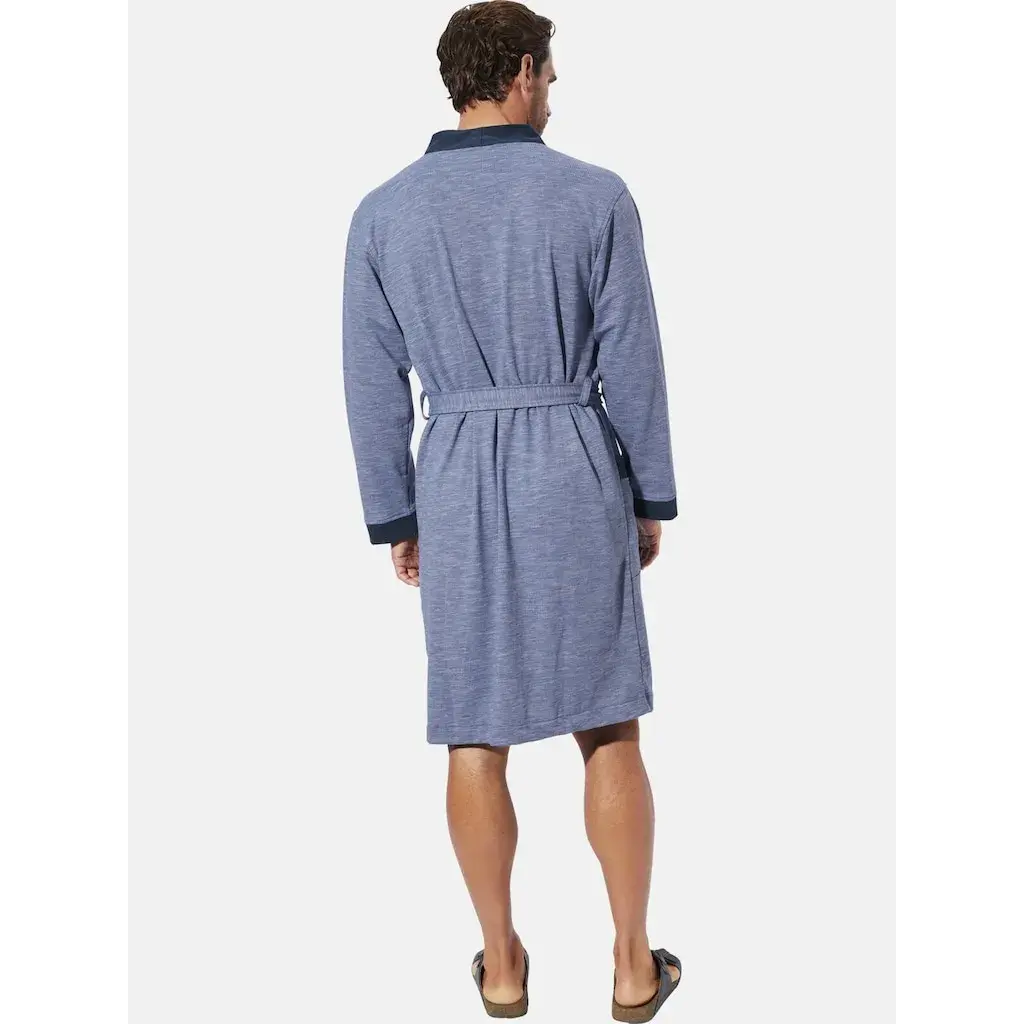 Халат QUARIN с контрастными деталями, из легкого в уходе хлопкового микса, с поясом в двух петлях, накладные карманы спереди, утонченная вышивка на груди