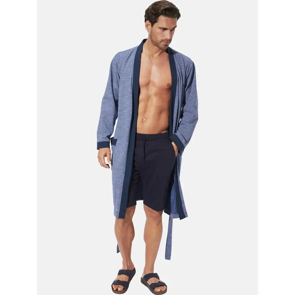 BABISTA уже 30 лет восхищает мужчин, следящих за модой и ценящих качество. Халат QUARIN от BABISTA: Начните утро стильно с этим изысканным халатом. Роскошный дизайн сочетает в себе элегантные контрасты на воротнике-шале, карманах и манжетах, превращая любое утреннее чаепитие или вечерний отдых в стильное событие. Декоративная вышивка на груди добавляет изысканный штрих, а практичные передние карманы обеспечивают функциональность. Пояс с двумя петлями позволяет халату с ненавязчивой структурой идеально подстраиваться под вашу индивидуальную посадку. Материал: 60% хлопок, 40% полиэстер. Машинная стирка.