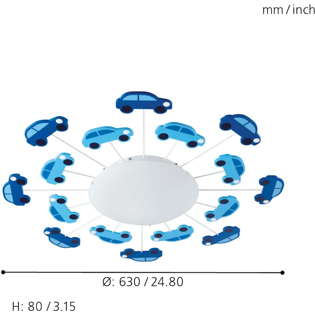 Потолочный светильник, на 1 лампу. Модный потолочный светильник, привлекает внимание в любой детской комнате, выполнен из металла. Абажур из стекла, матовый, белый. Подходящие лампы: 1 х E27, макс. 60 Вт, в комплект не входит. Размеры: вынос около 8 см, диаметр 63 см. Светильник: сталь, синий. Абажур: стекло, матовое, белое. Вынос всего 8 см. Поставщик: Eglo. Артикул поставщика: 92146.