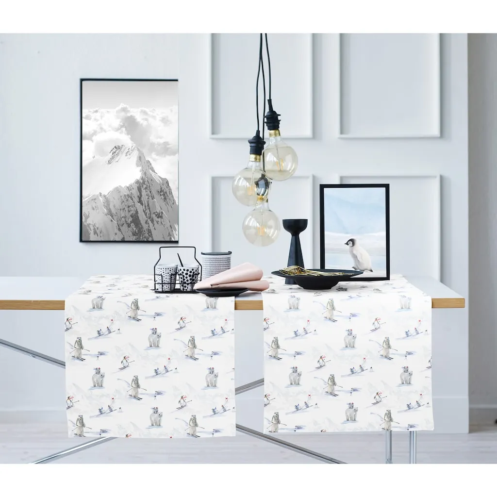 Романтический зимний мотив от компании Apelt. Настоящее зимнее украшение с изображением белых медведей и других животных, которые наслаждаются катанием на лыжах. Для сезонного рождественского декора. Множество различных размеров, первоклассная обработка, различные размеры подушек, в виде элегантной дорожки, скатерти, центральной скатерти и настольной ленты с изысканным сужающимся краем, а также в комплекте. Все изделия снабжены уголками для писем. Чехол для подушки имеет практичную застежку-молнию. Высококачественная цифровая печать выполнена на ткани из 30% хлопка и 70% полиэстера. Можно стирать при 30°C в деликатном режиме, подушки предварительно вывернуть наизнанку, сушить во влажном виде, гладить на втором уровне. Изделия проверены на отсутствие вредных веществ по стандарту ОКОТЕКС 100 и произведены в Германии.