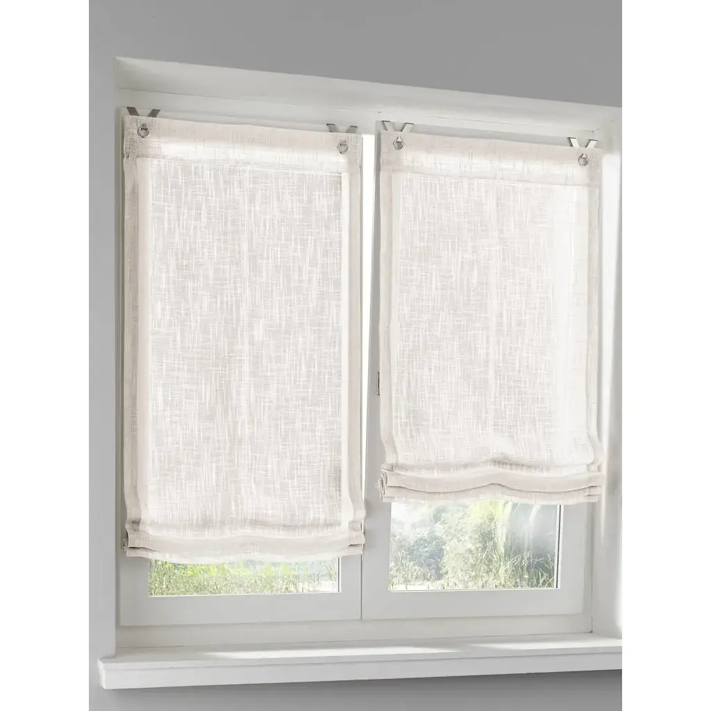 Полупрозрачные рулонные шторы, тяжелого качества с эффектом благородного льна. С шнуровым приводом и стопором. Простая установка без сверления, с крючками и кольцами. Советы по правильному снятию мерок онлайн. Размеры 1 и 2: с 2 кольцами, размеры 3, 4, 5 и 6: с 3 кольцами. Крючки заказывать отдельно. 100% полиэстер. Машинная стирка возможна.