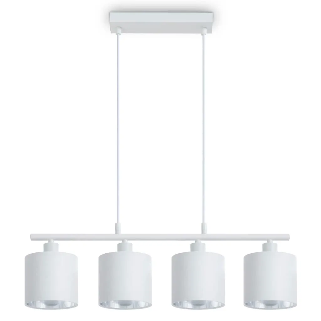 ОПТИКА - Этот стильный подвесной светильник выполнен в классических черном или белом цвете и оснащен тканевыми абажурами в современных цветовых вариантах,СТИЛЬ - Минималистично и элегантно, светильник станет визуальной изюминкой любого интерьера,МАТЕРИАЛ - Прочный и легкий, этот светильник изготовлен из прочной стали и оснащен качественными тканевыми абажурами,ДЕТАЛИ - С четырьмя плафонами и патронами E14, вы можете использовать любые лампы E14 мощностью до 15 Вт.