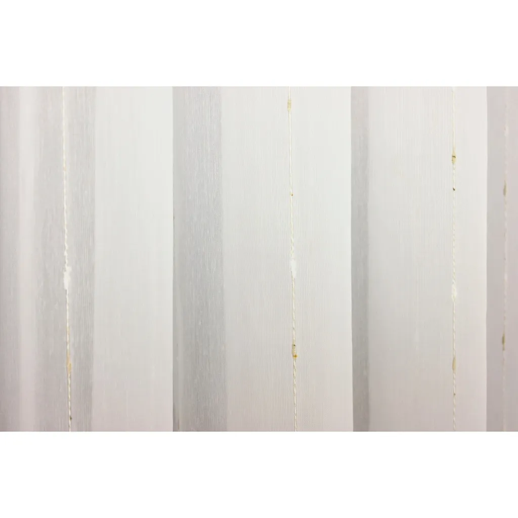 Размеры и вес: Ширина: 300 см Высота: 120 см Подробности Крепление: лента для складок Внешний вид/стиль Цвет: слоновая кость Прозрачность: полупрозрачный Структура поверхности: текстурированная Дизайн: продольные полосы, узорный Материал Состав материала: верхний Материал: 100% полиэстер Материал: полиэстер Комплектация Количество предметов: 1 шт. Уход Рекомендации по уходу: стирка при 30°C деликатная Интересная информация Примечание по декорации: указанные размеры относятся к ткани; после оформления на окне ширина уменьшается примерно до трети. Примечание по креплению: крепление с помощью шторной каретки (в комплект не входит) в шторную шину. Замечания по качеству Примечание по материалу: полиэстер - это химическое волокно, которое очень легко в уходе. Изделие сохраняет форму и устойчиво к износу. Кроме того, оно не сжимается при стирке и хорошо переносит свет.