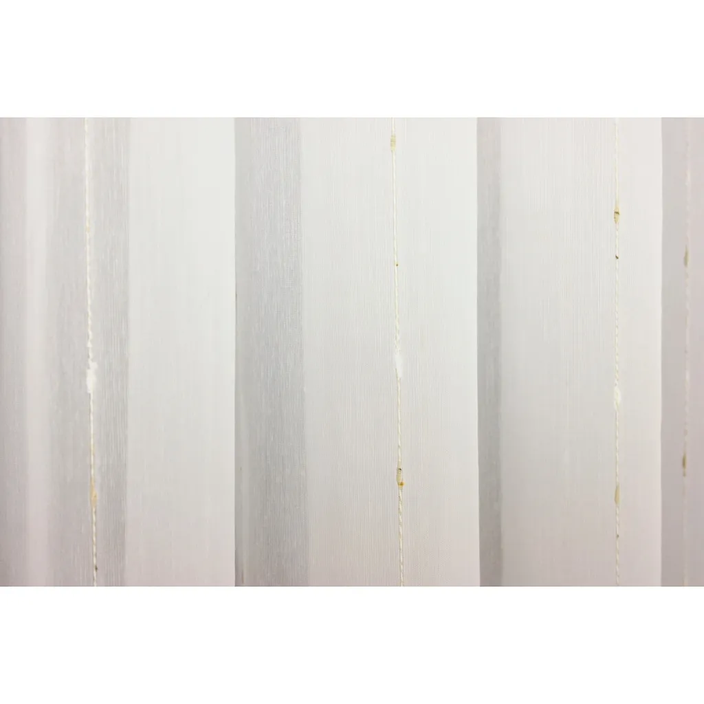 Размеры и вес: Ширина: 450 см Высота: 120 см Детали Подвеска: люверсы Внешний вид/стиль Название цвета: слоновая кость Прозрачность: полупрозрачная Структура поверхности: текстурированная Дизайн: продольные полосы, с узором Материал Состав материала: верхний Материал: 100% полиэстер Материал: полиэстер Материал: подвески: металл / хромированный Комплектация Количество предметов: 1 шт. Уход Рекомендации по уходу: бережная стирка при 30°C Полезная информация Примечание по декорации: указанные размеры являются размерами ткани; на окне в готовом виде ширина уменьшается примерно в два раза. Примечание по подвеске: подвешивается с помощью люверсов (диаметр приблизительно 35 мм) на карниз. Качество Примечание о материале: полиэстер - это химическое волокно, которое является очень неприхотливым в уходе. Изделие сохраняет форму, прочное, не садится и обладает высокой светостойкостью.
