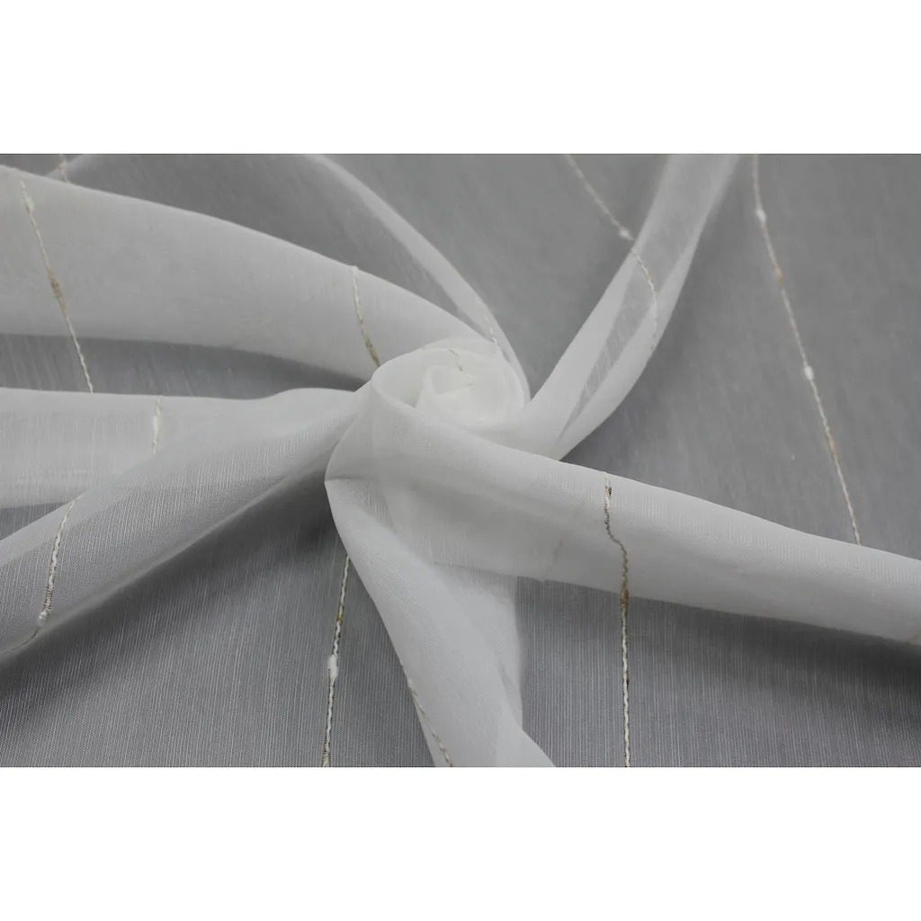 Прекрасная штора - это современная интерпретация муслиновой шторы от Георга Хр. Вирта. Классическая основа из муслина периодически прерывается легкими бежевыми и очень прозрачными участками. Этот прозрачный полосатый элемент одновременно служит фоном для насыщенных узорных эффектных нитей, которые делают эту штору настоящим наслаждением на окне. В соответствии с этим характером мы предлагаем новую конструкцию подвески с люверсами. Желаем вам с удовольствием украсить ваше окно этой уникальной моделью. С уважением, команда Георга Хр. Вирта.
