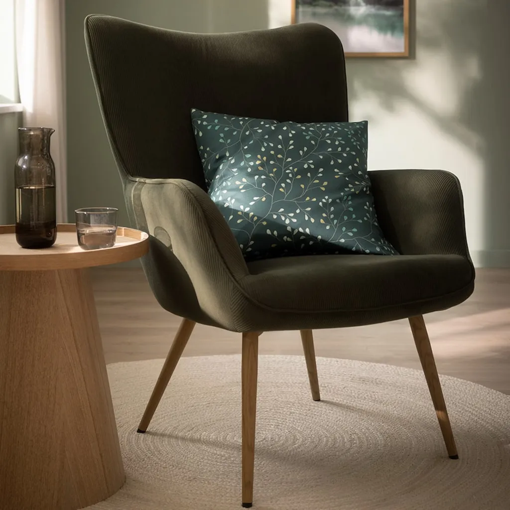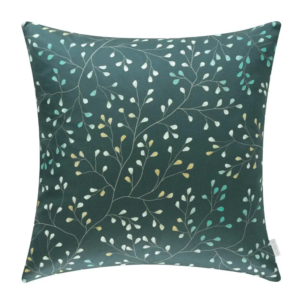 100% высококачественный хлопок, игривый листовой узор на темном фоне, идеально для современных и уютных интерьеров, цветовые акценты в оттенках нефрита, липы и натурального, легкий уход, подходит для сушки в сушильной машине и гипоаллергенный