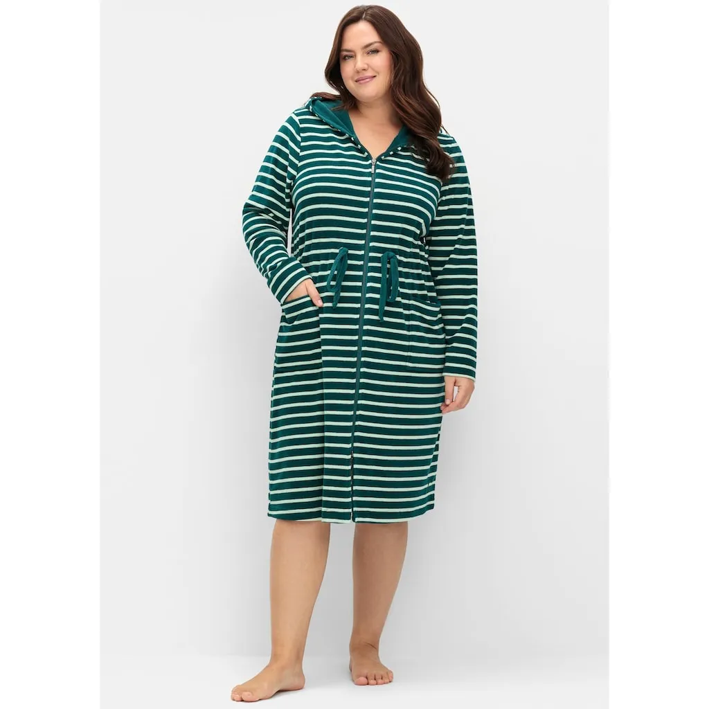 • С полосатым узором • С капюшоном и боковыми карманами • Практичная двухсторонняя молния • Из махровой ткани, легкой в уходе и допускающей машинную сушку • Поддерживает инициативу «Cotton made in Africa»Халат с капюшоном. Выполнен из легкой махровой ткани, очаровательные полоски придают свежести образу. Особенно практична двухсторонняя молния, которую можно открыть и снизу. Благодаря кулиске с поясом можно регулировать ширину талии. С удобными карманами дизайн завершен идеально. Независимо от того, носите ли вы его после купания или утром, это идеальный спутник на любое время дня!Подробнее о посадкеДлина ниже колена. Халат сидит свободно и может быть затянут на талии с помощью кулиски.Подробнее о материалеНежная для кожи ткань с высоким содержанием хлопка, легко в уходе и допускает машинную сушку. 80% хлопок, 20% полиэстер.