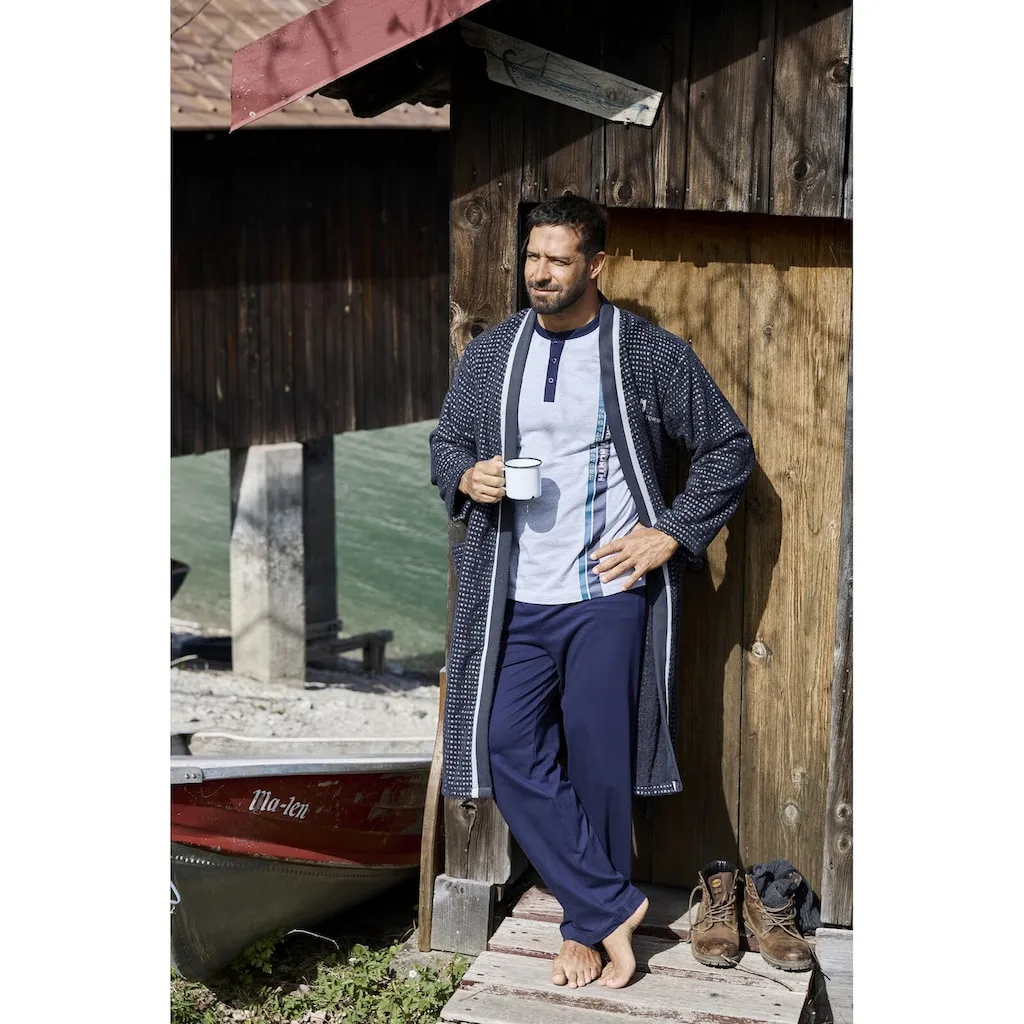 JAN VANDERSTORM - это ваш эксперт по мужской одежде больших размеров. Идеальный спутник для настоящих викингов после сауны: халат TRIFRED от JAN VANDERSTORM - это идеальная вещь для накидывания. Этот удобный утренний халат оснащен простым поясом, который плавно переходит в структурный узор с гармоничными контрастами. По бокам расположены два накладных кармана для всех ваших мелочей, чтобы вам не приходилось их носить отдельно. Вышитый логотип JV на груди придает мужскому велнес-образу финальный штрих. С халатом TRIFRED вы просто наслаждаетесь непринужденными часами отдыха. Comfort Fit. Материал: 100% хлопок. Машинная стирка.